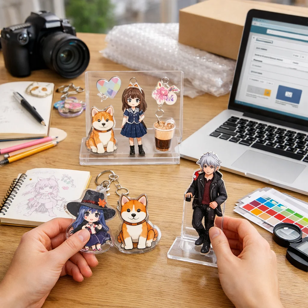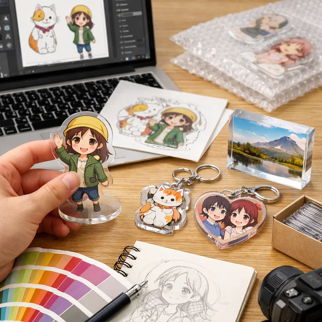 これらの準備物を整理することで、アクリルグッズサンプル注文する際、スムーズに進行できます。また、初心者がやりがちな漏れには、CMYK変換や解像度、フォントアウトライン、白版指示などが挙げられます。
