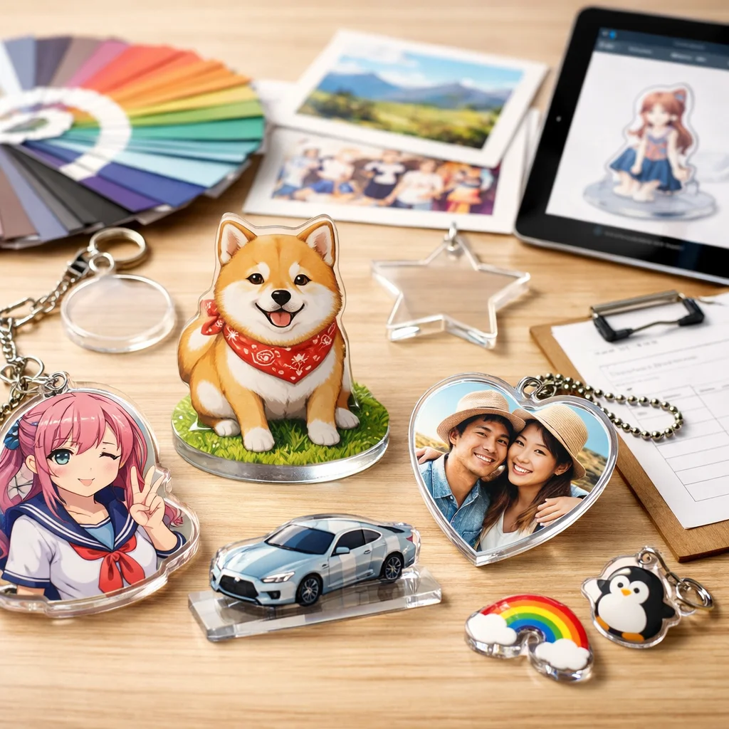 近年のアクリルグッズでは、多層/両面透け感活用ゆらゆら/連結などのスタイルが注目されています。これらのスタイルは、視覚的なインパクトや趣向が豊かで、サンプルでの検証も重要です。アクリルグッズの注文方法を理解することで、理想的な製品を手に入れることが可能になります。