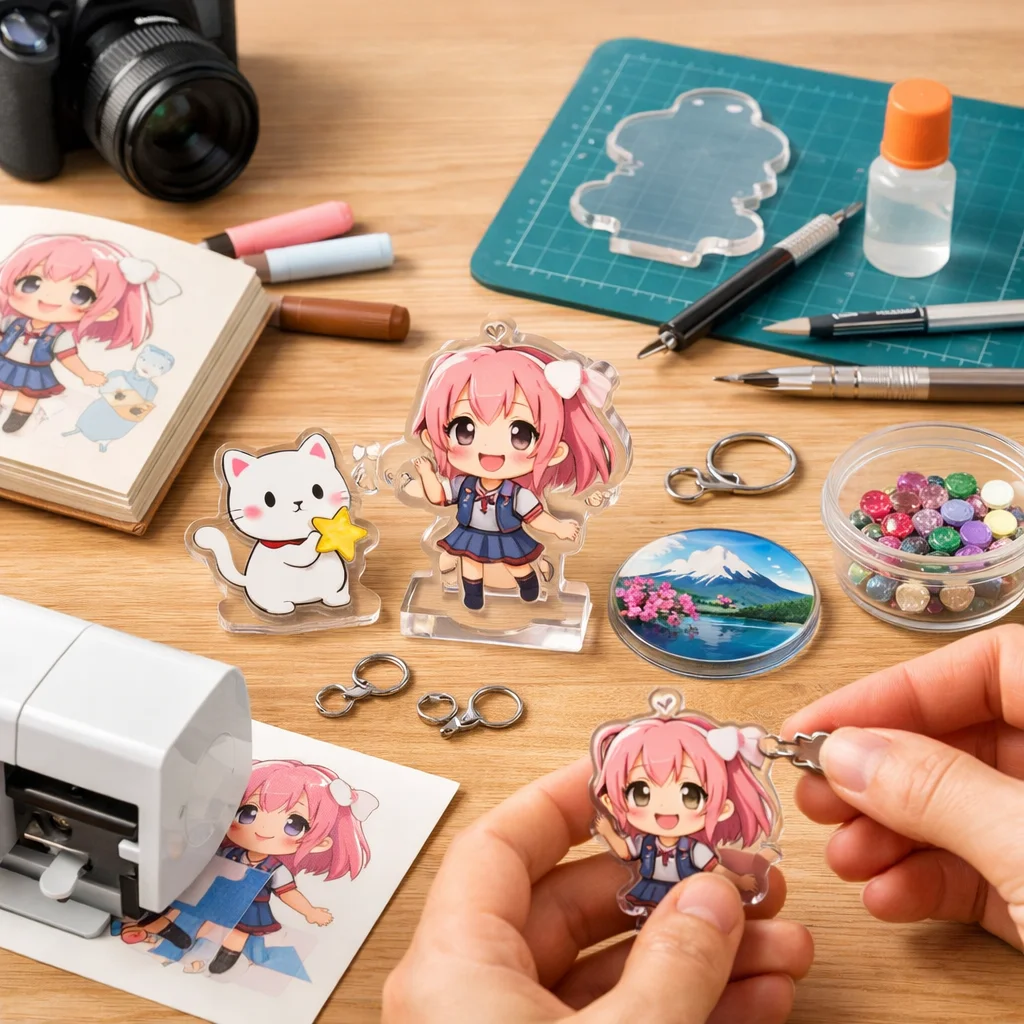アクリルグッズの個人制作を始めたい初心者の方へ、作り方や手順、必要な道具、注意点、そして活用方法や販売までの流れを詳しくご紹介します。