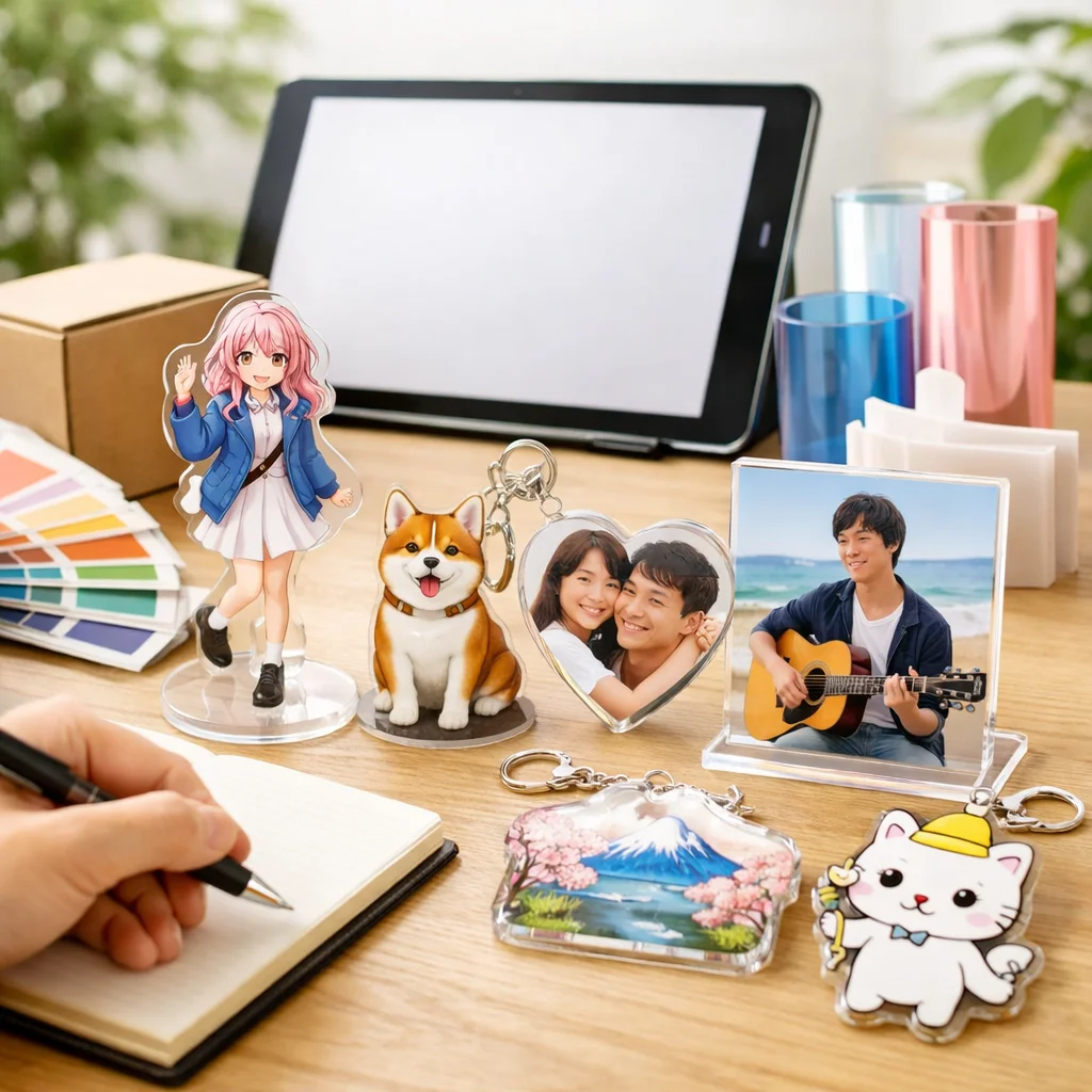 アクリルグッズの制作を進める際には、デザインのクオリティや用途を考慮し、自分の思い描くものを形にすることができます。個人での注文だからこその特別感や楽しさを味わえるのも、あなただけのアクリルグッズを持つことの醍醐味です。