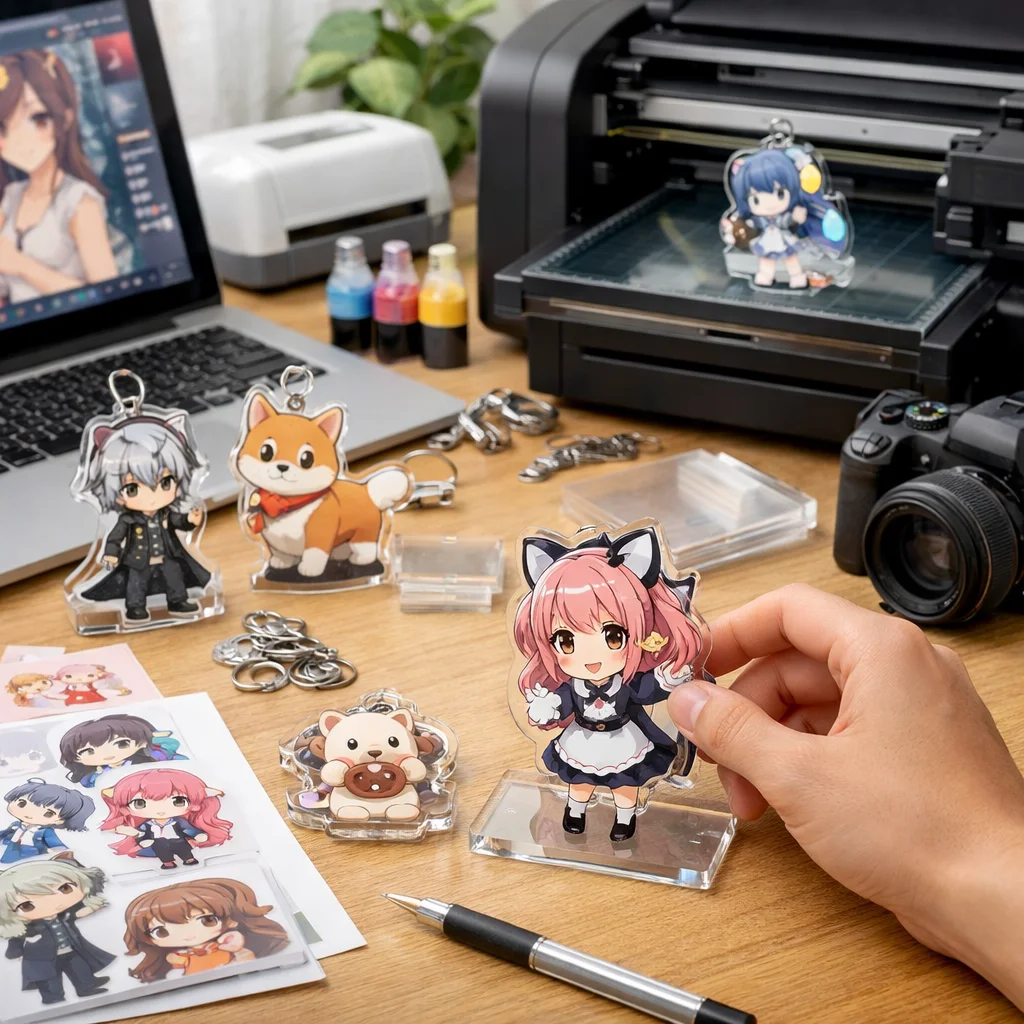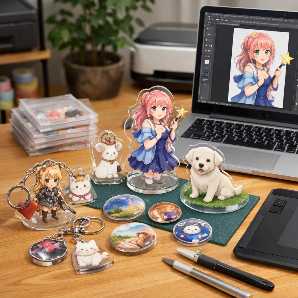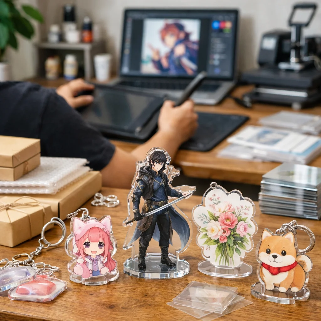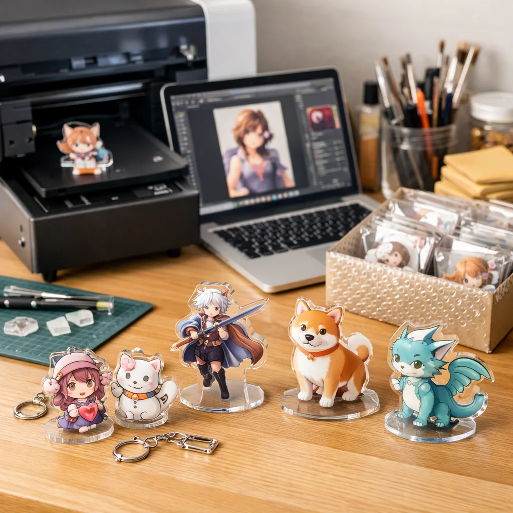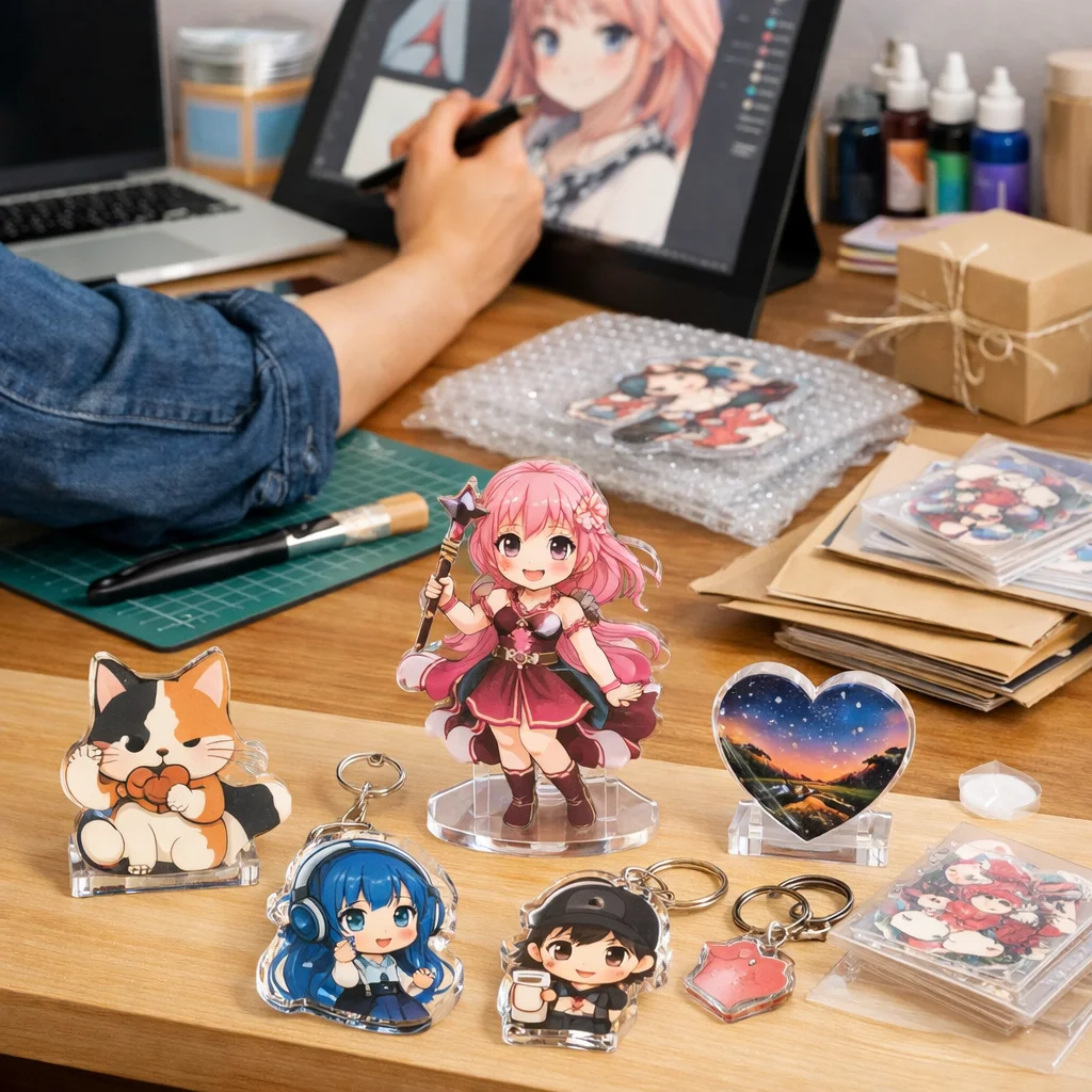 アクリルグッズの個人販売を始めるにあたり、まずはアクリルグッズの魅力と市場性を理解することが重要です。アクリルグッズは、その透明感や軽さ、加工のしやすさから、キーホルダーやスタンド、バッジなど多彩な商品に展開されています。これらのアクリルグッズは、個性的なデザインやオリジナリティを追求する個人クリエイターにとって、表現の幅を広げる絶好の素材と言えるでしょう。