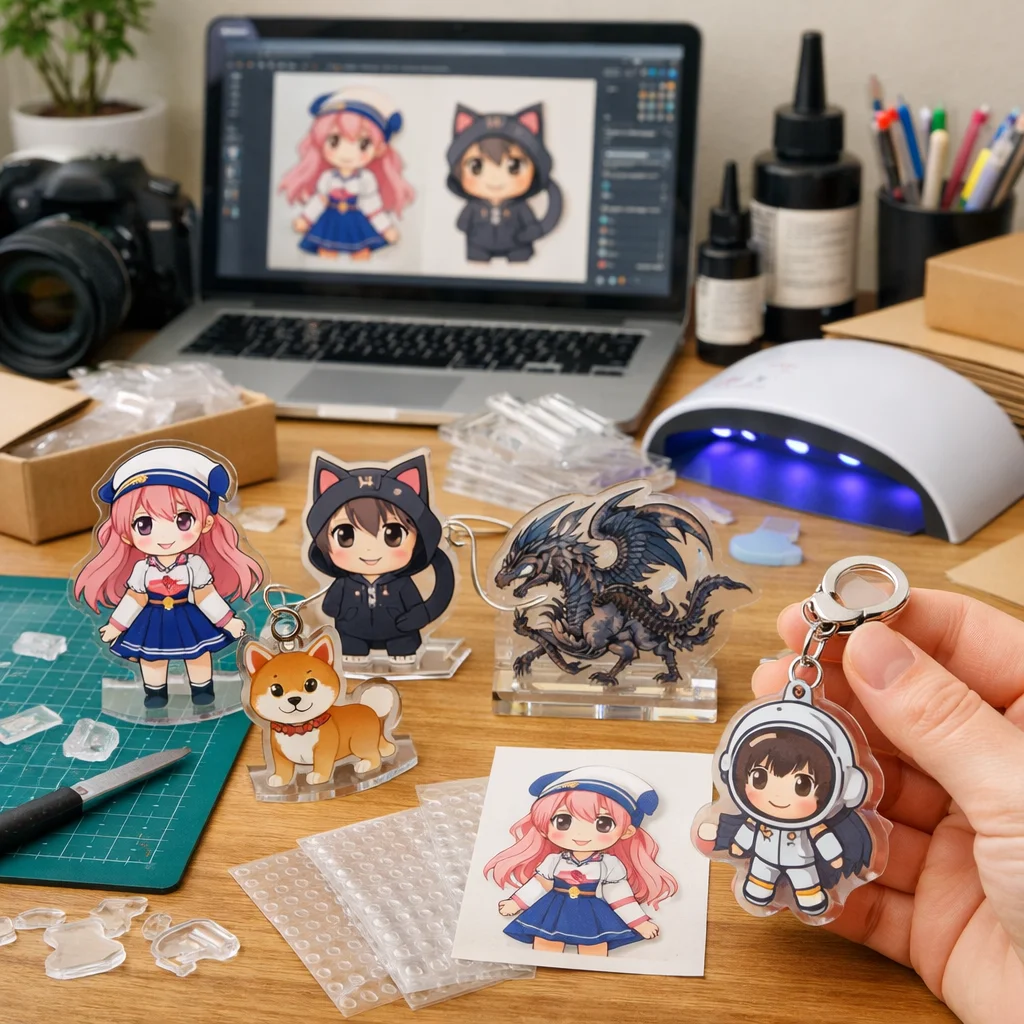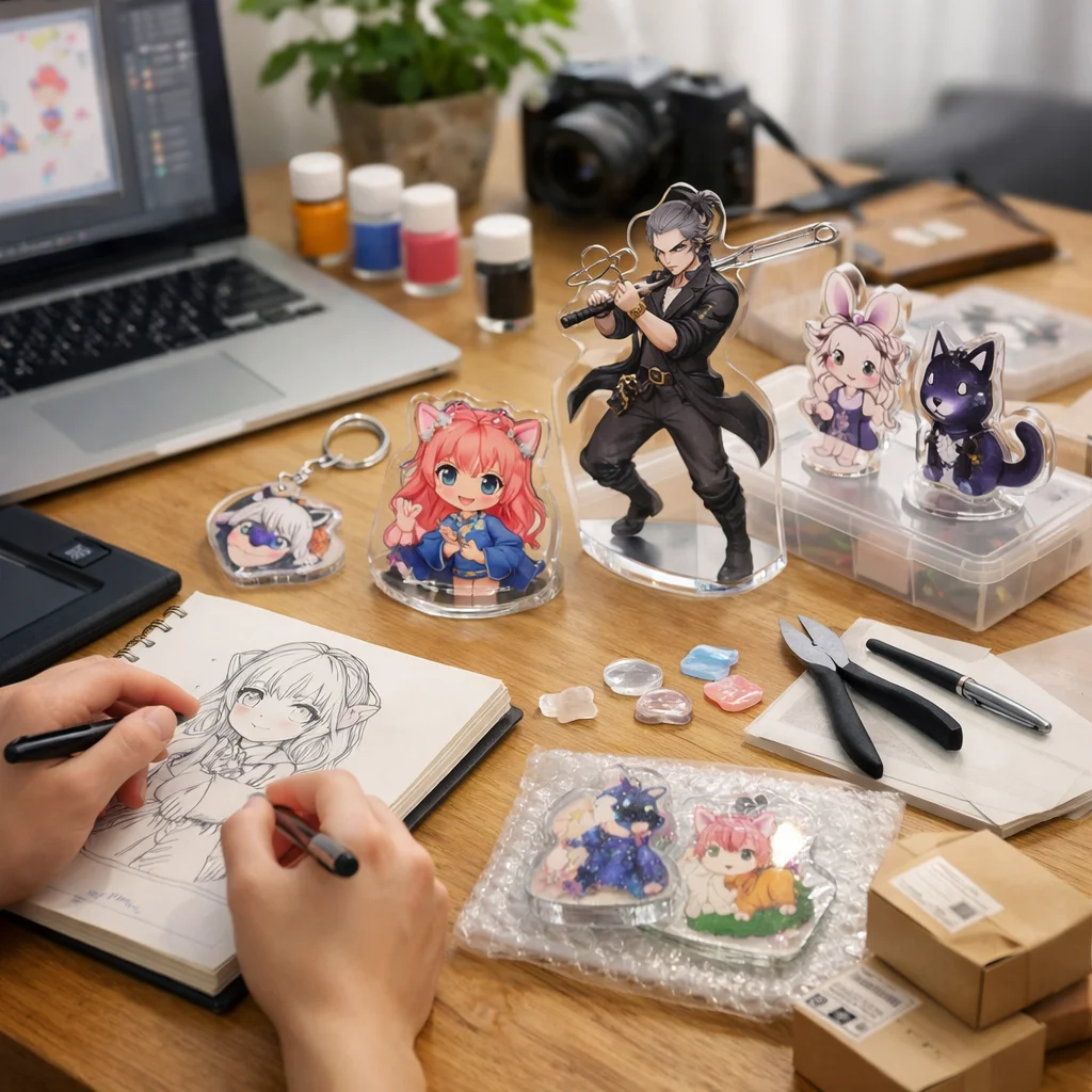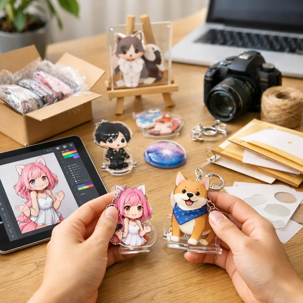まず、どのようなアクリルグッズを販売するかを決定します。自分の趣味や興味を反映させたデザインが、他の作品と差別化を図るポイントとなります。デザインが決まったら、信頼できる製造業者を選び、品質の高いアクリルグッズを制作しましょう。