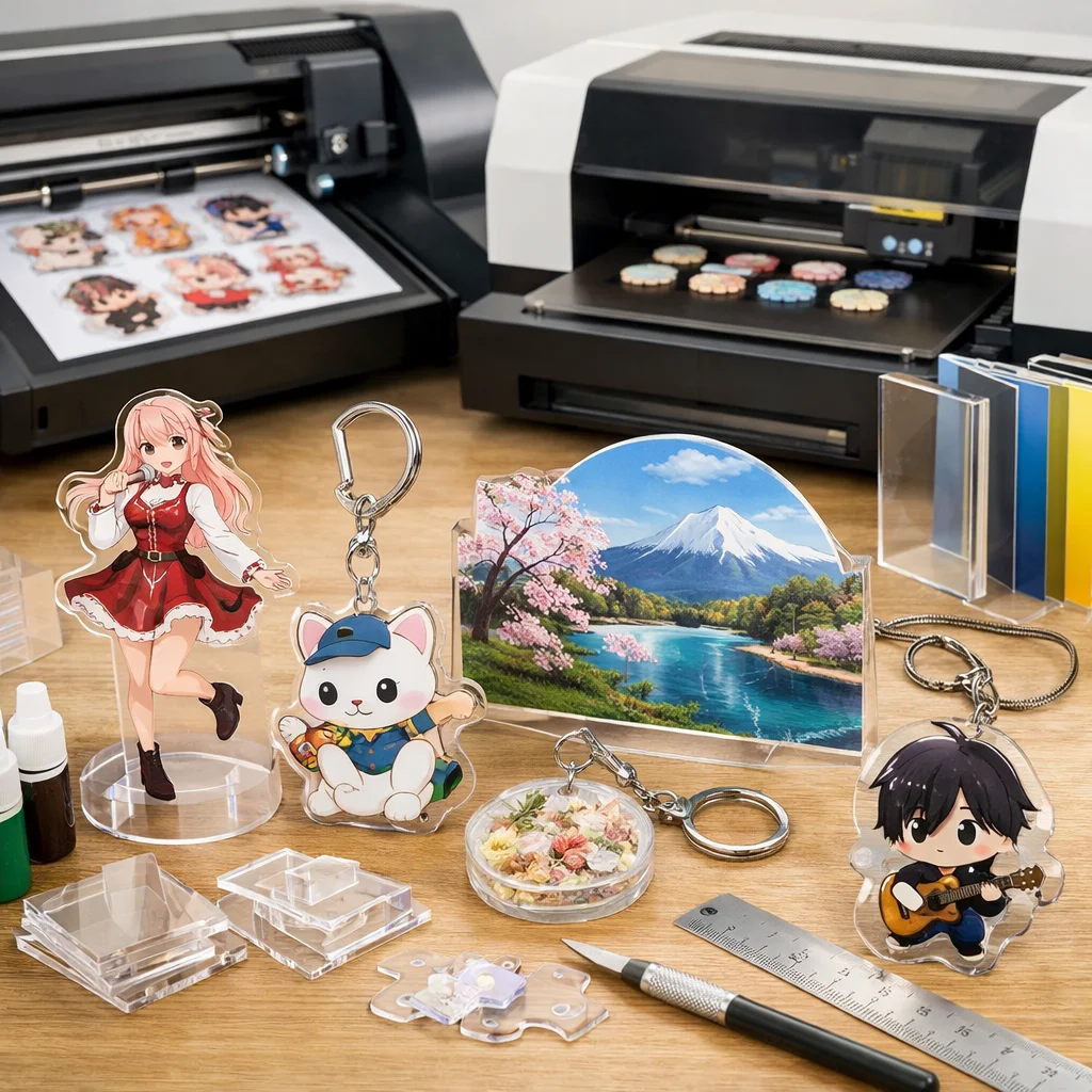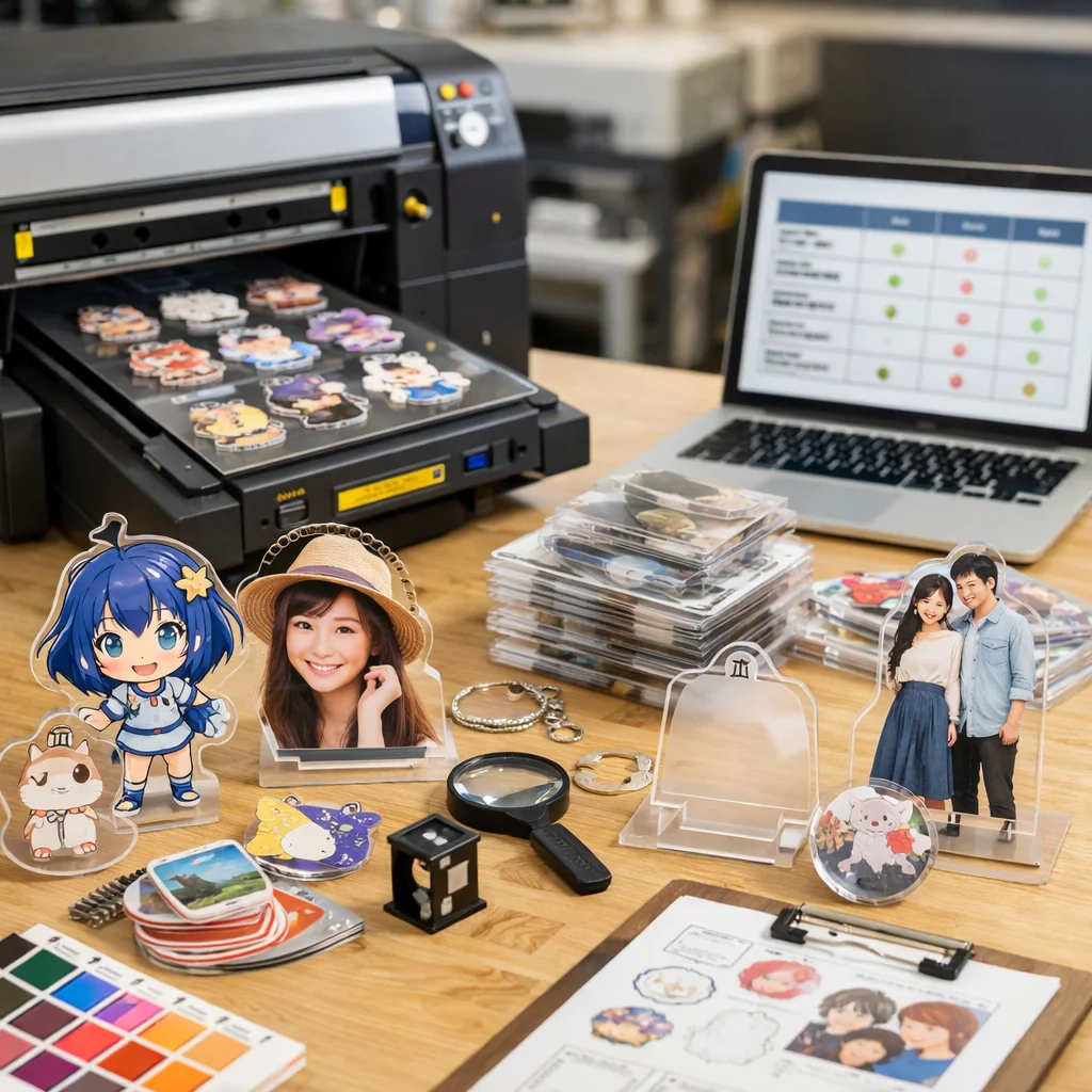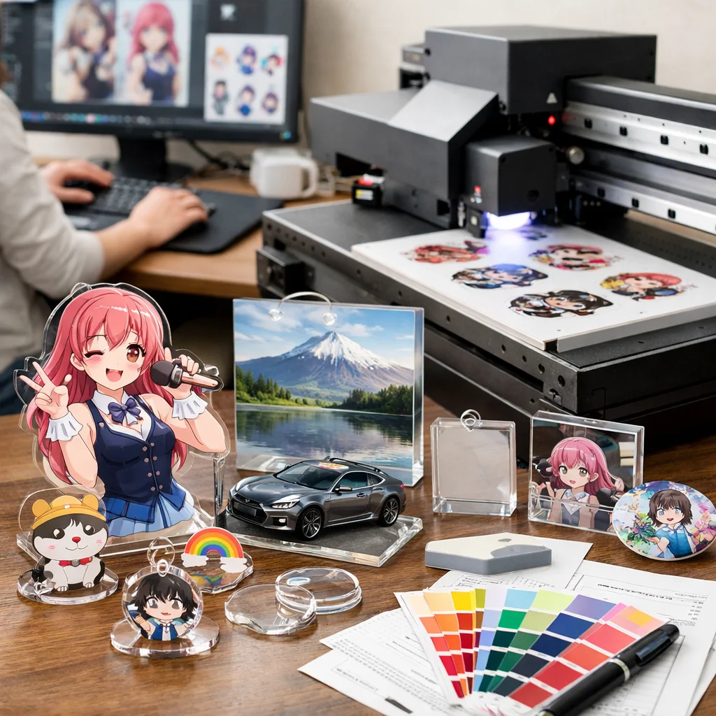 最新の印刷・加工技術の進歩により、アクリルグッズの受注生産の仕組みは大きく変化しています。これらの技術革新は、表現力の向上、コスト削減、そして納期短縮に寄与しています。以下に、主要な技術トレンドとその影響を解説します。