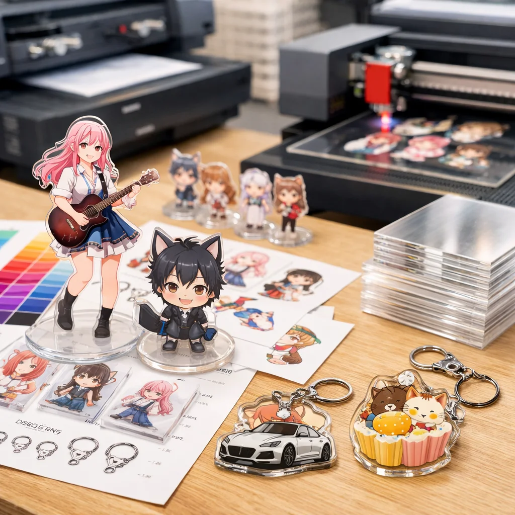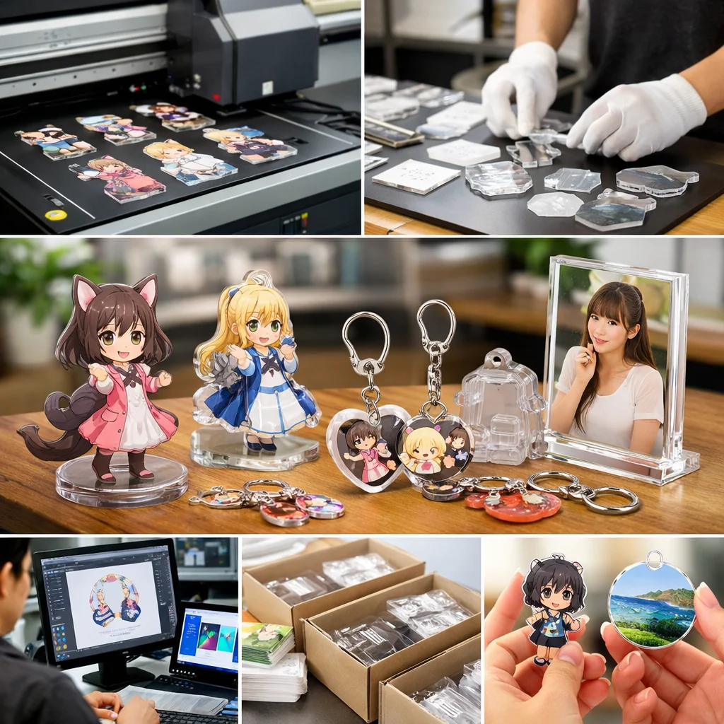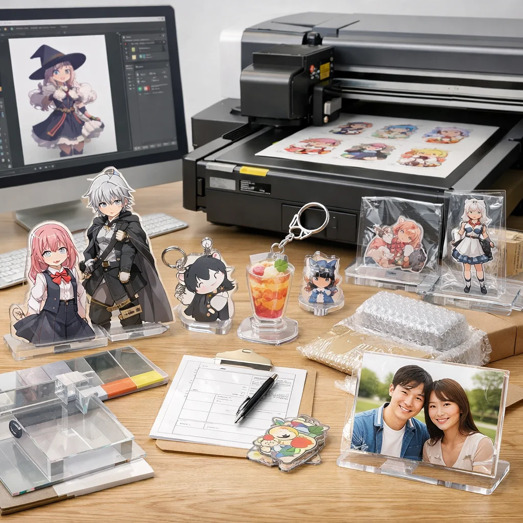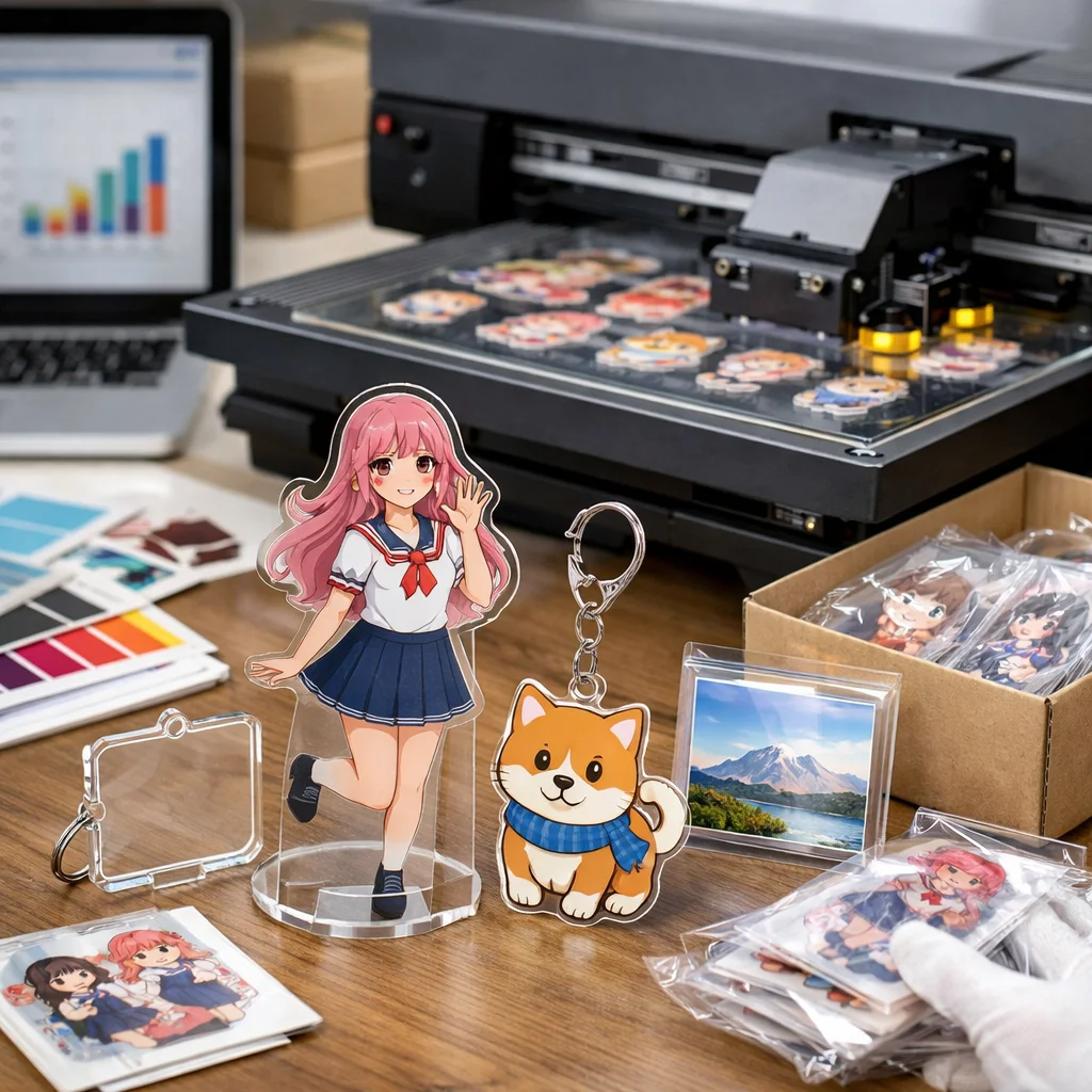 最新の印刷・加工技術の進歩により、アクリルグッズの受注生産の仕組みは大きく変化しています。これらの技術革新は、表現力の向上、コスト削減、そして納期短縮に寄与しています。以下に、主要な技術トレンドとその影響を解説します。