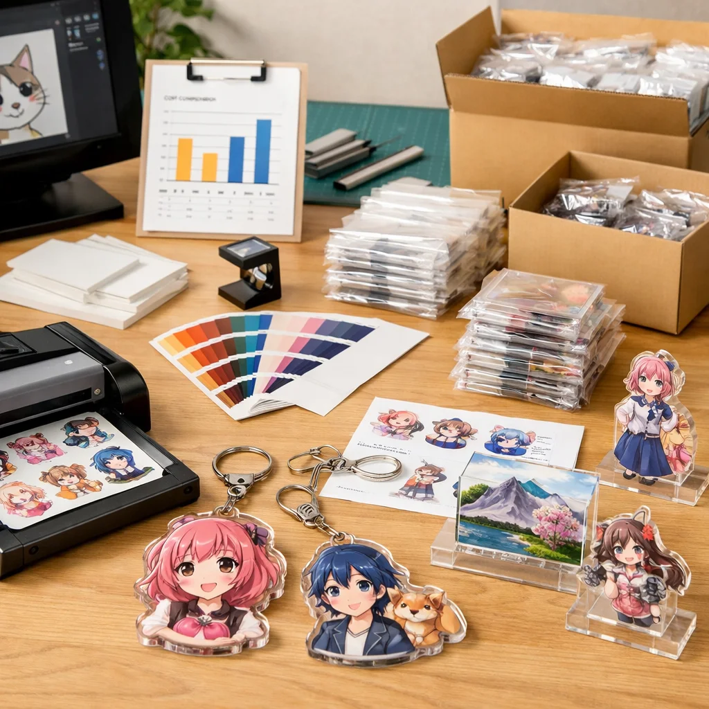 受注生産のコストと価格設定の違いについて考える際、アクリルグッズの製造における原価の内訳を理解することが重要です。アクリルグッズは、その軽量で耐久性のある特性から、多様な商品に利用されていますが、製作過程には多くのコストが含まれています。