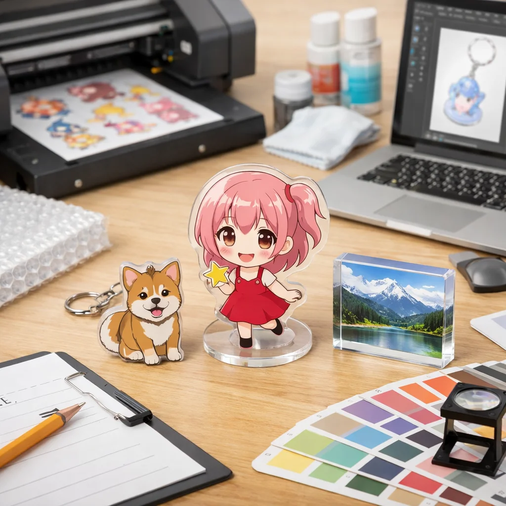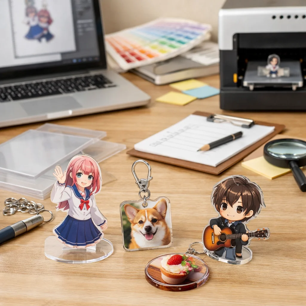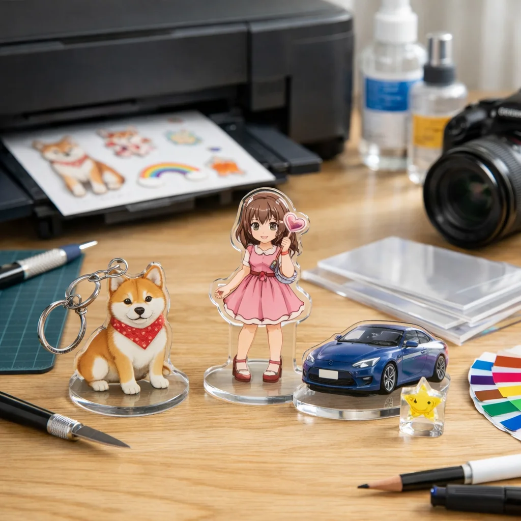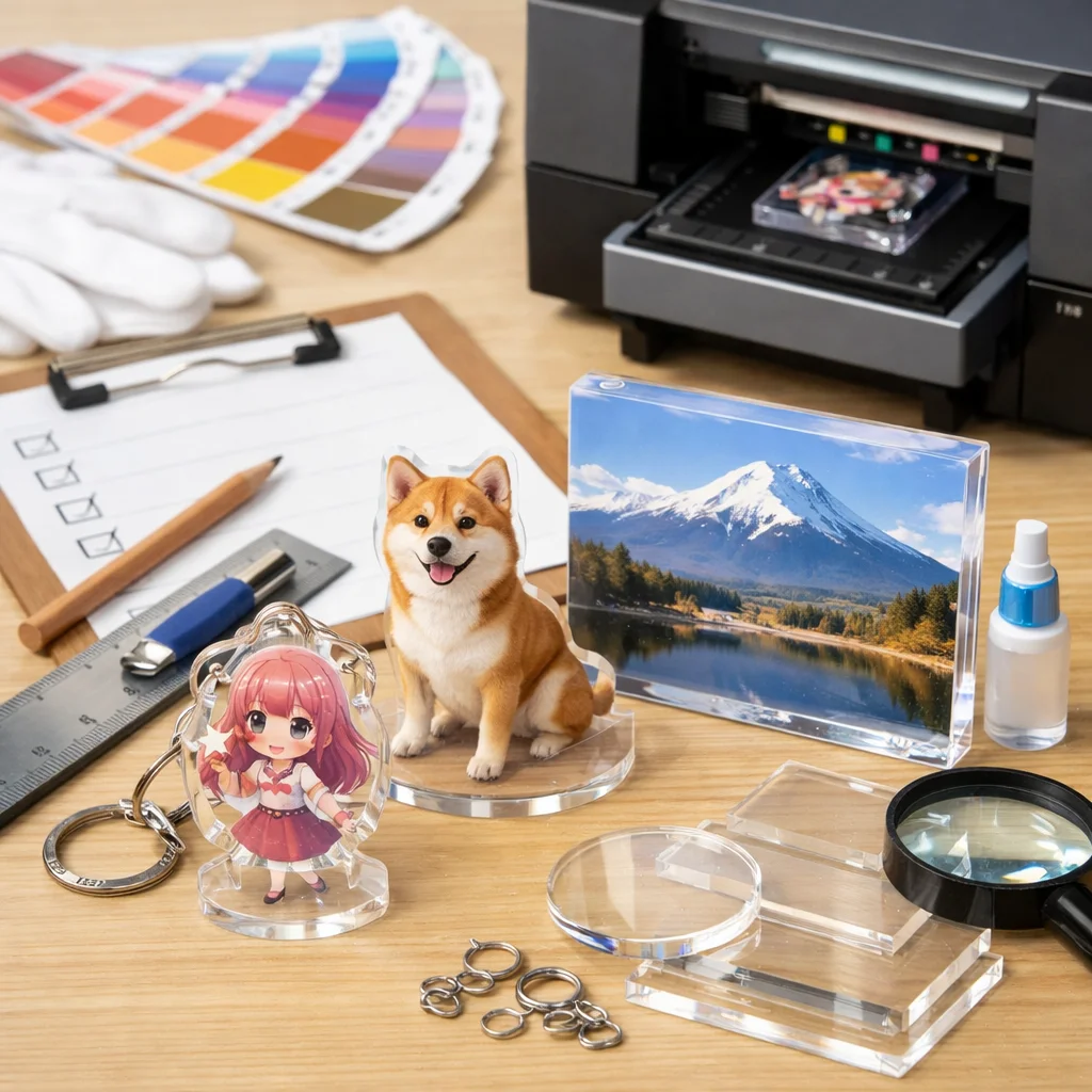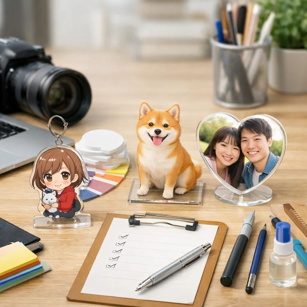 このように、アクリルグッズの制作は様々なプロセスを経て完成します。しっかりした確認と計画で、満足度の高いアクリルグッズを手に入れましょう。アクリルグッズは1個からでも制作可能で、あなたの思い描く特別なアイテムを手にすることができます。注意点をしっかりと押さえ、スムーズな制作フローで素晴らしいアクリルグッズを作成していきましょう。