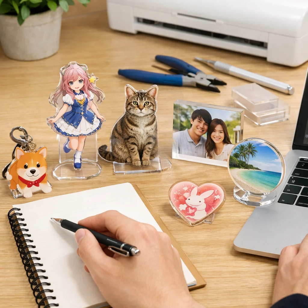 これらの手順を実践することで、アクリルグッズを1個から制作・販売する際の成功確率が高まります。個人のアイデアを形にしたアクリルグッズは、多くの人々に喜ばれることでしょう。最初の一歩を踏み出し、アクリルグッズを制作するための計画を立ててみてはいかがでしょうか。