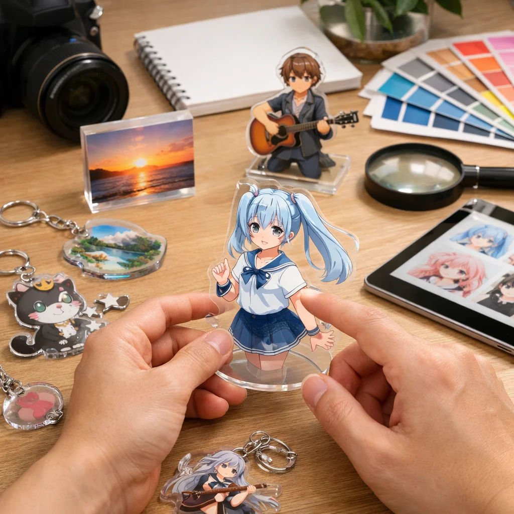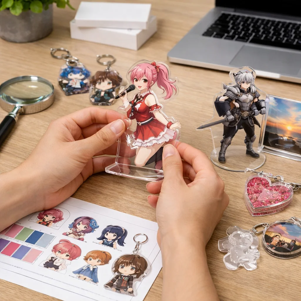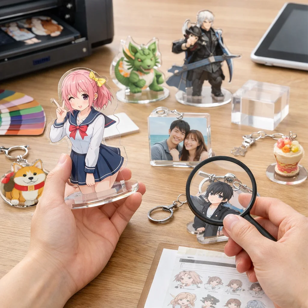 まず初めに、アクリルグッズのサンプルを確認する理由について考えましょう。新しいアクリルグッズを制作する際、実物のサンプルを確認することで、デザインや質感を直接体感することができます。これにより、最終製品の完成時に後悔することを避けることができます。特に、サイズや色合いが実際にどのように見えるかは、デジタル画面だけでは判断しきれないことが多いです。
