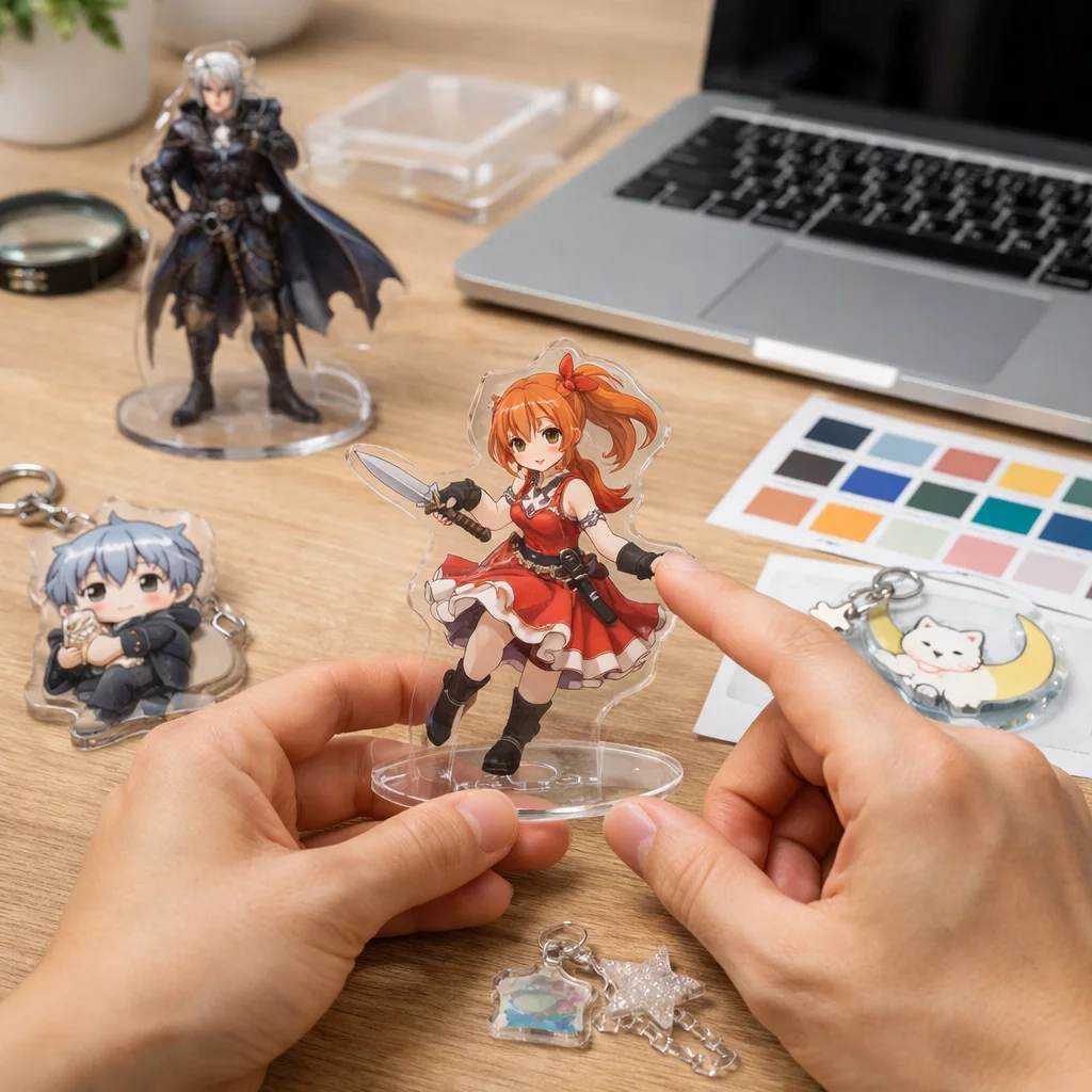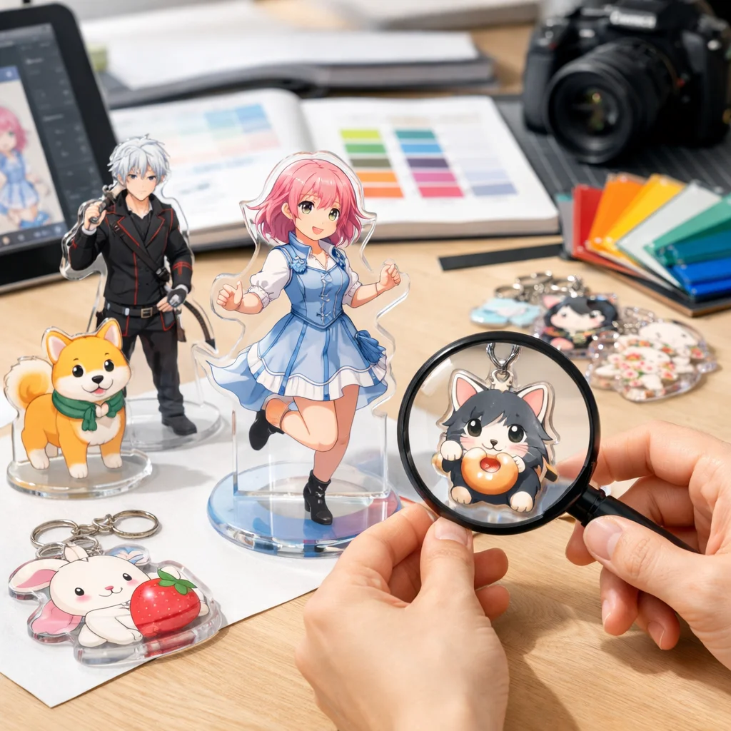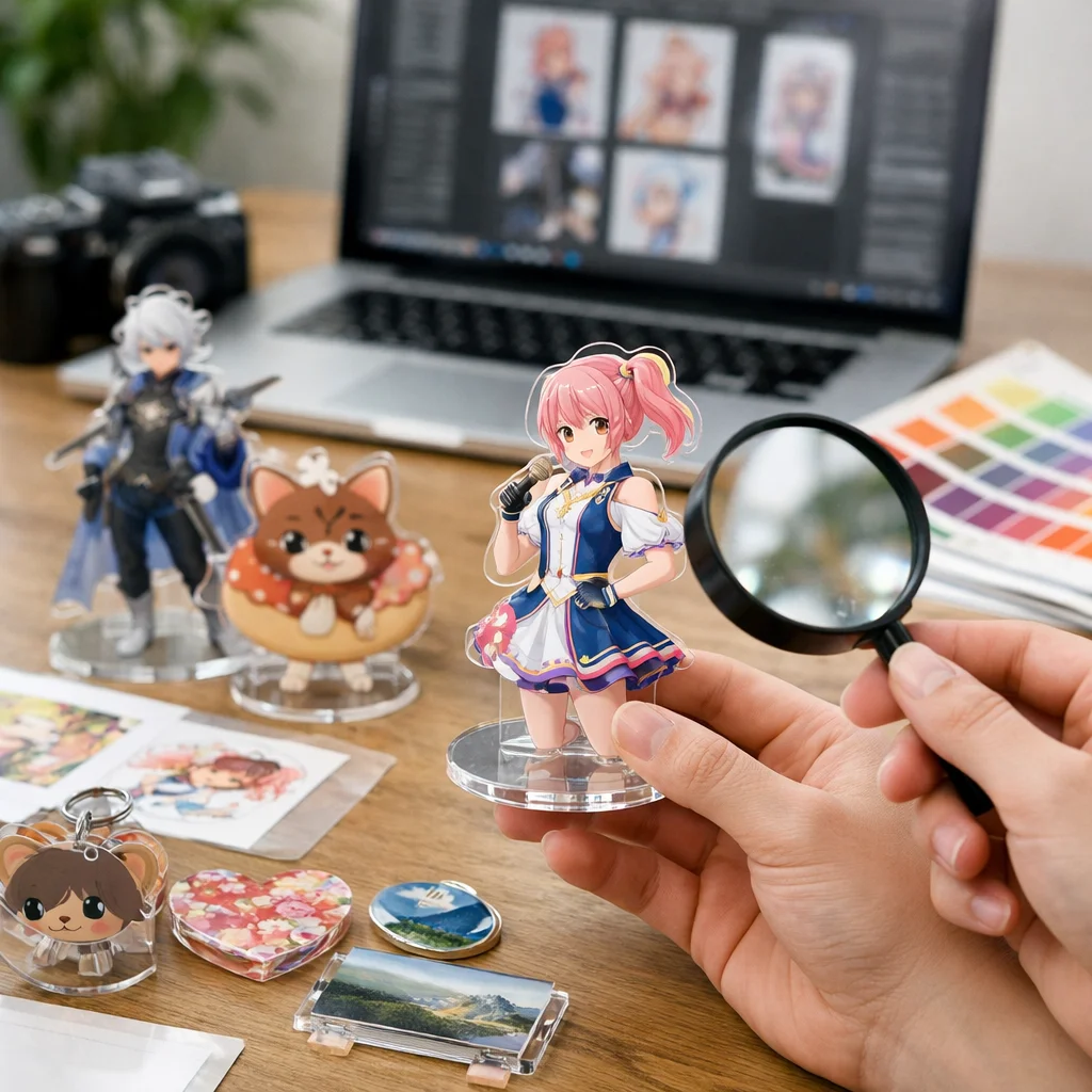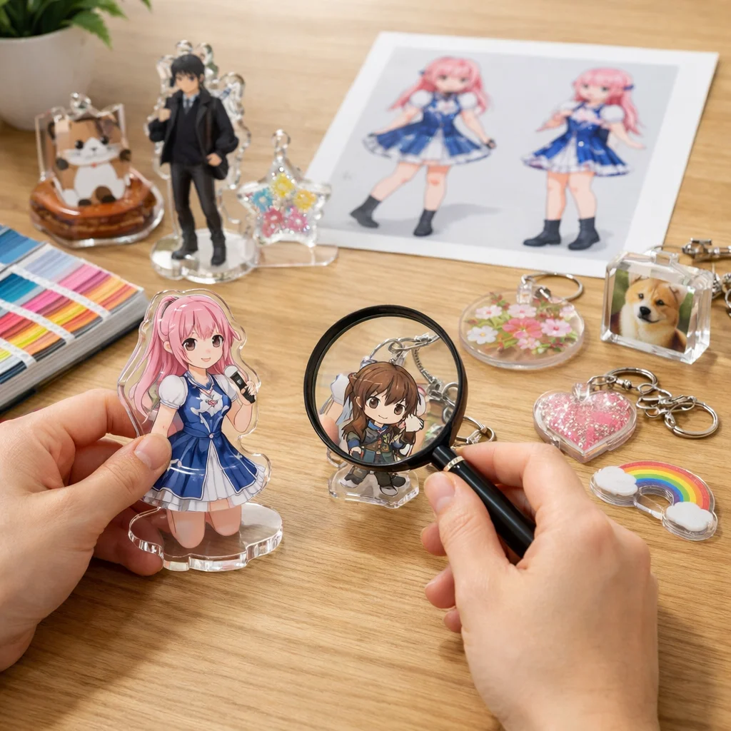 このように、アクリルグッズのサンプル確認は、デザイン、品質、使い勝手、そして納期やコストといったさまざまな観点から行うことが非常に重要です。これらのポイントを意識することで、満足のいくアクリルグッズを手に入れることができるでしょう。サンプル確認は、ただの最初のステップではなく、製品の成功を左右する重要なプロセスであることを忘れないでください。