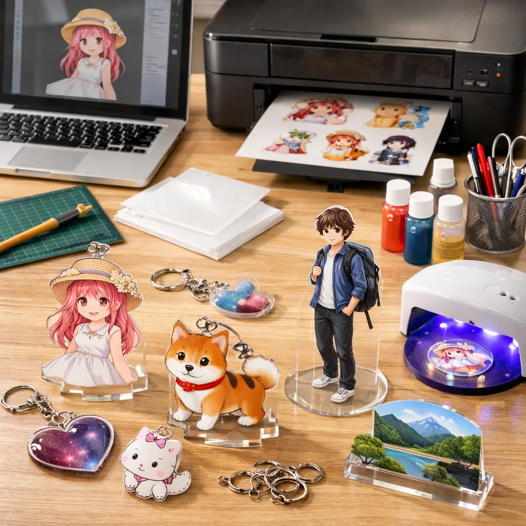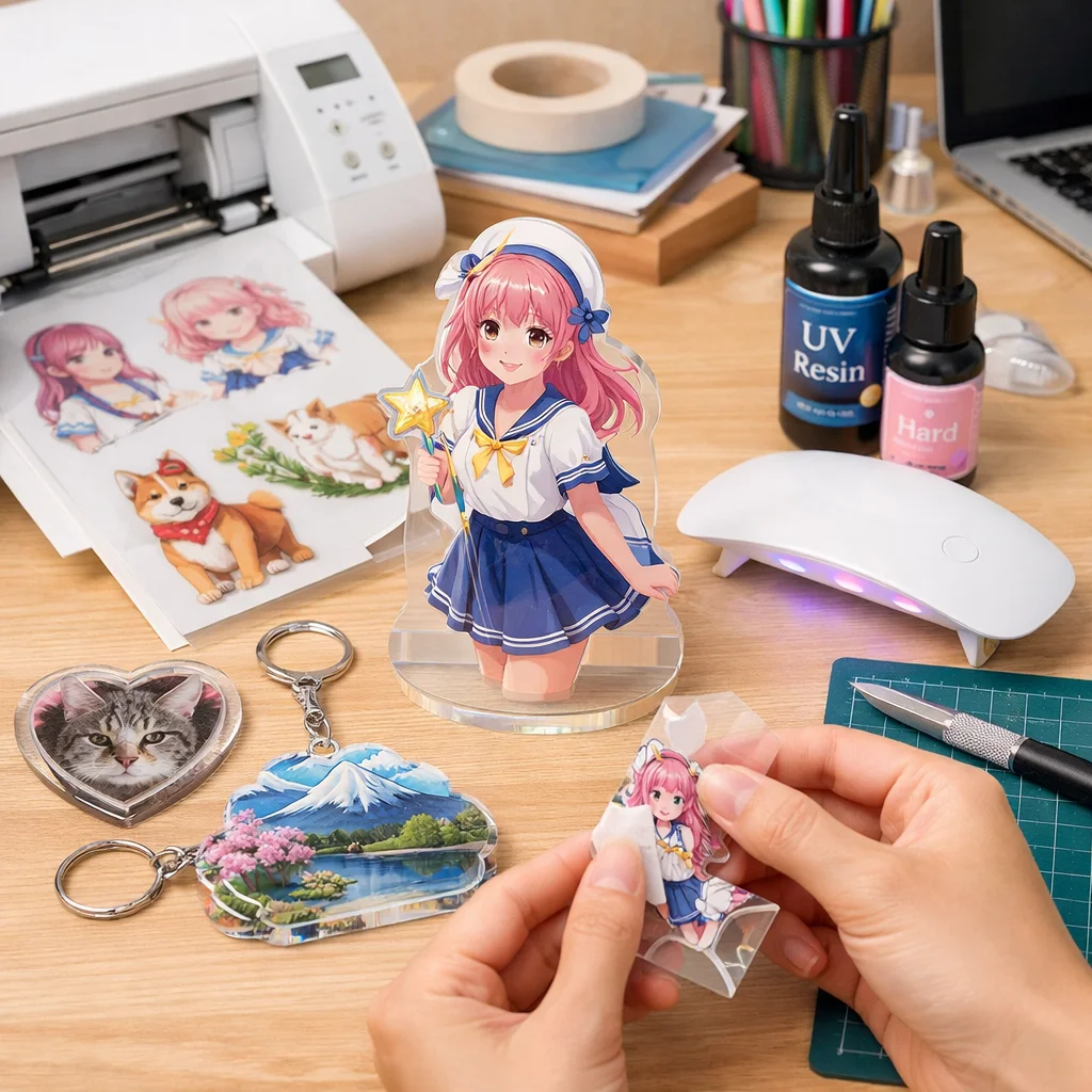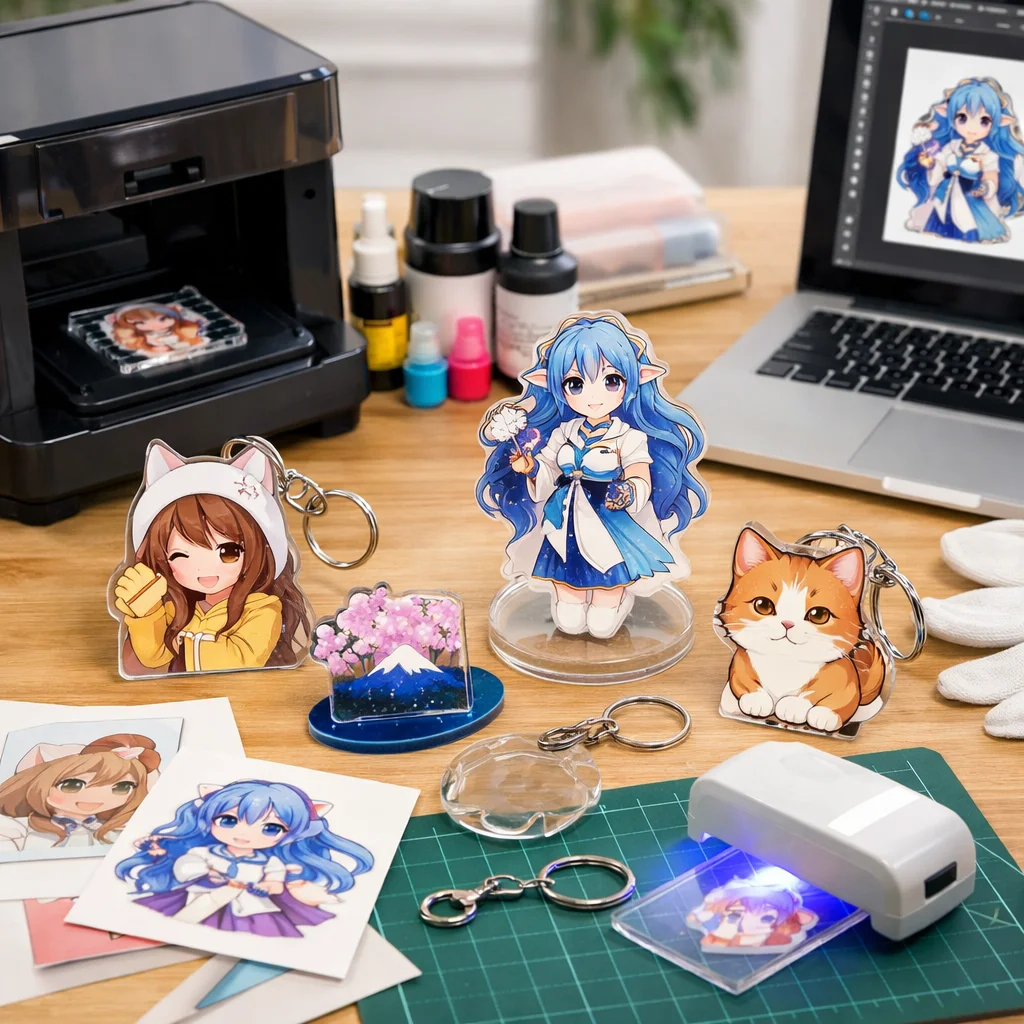 次に、印刷サービスを利用する方法があります。こちらは専門業者にデザインを依頼し、アクリルグッズを制作してもらいます。この場合、難易度は低く、誰でも簡単に注文することができます。初期費用も比較的安価で、少量から注文が可能なサービスも多いため、初めての方や販売を考える方にもおすすめです。ただし、仕上がりは業者のクオリティに依存するため、デザインに自信がない方でも安心して依頼できます。