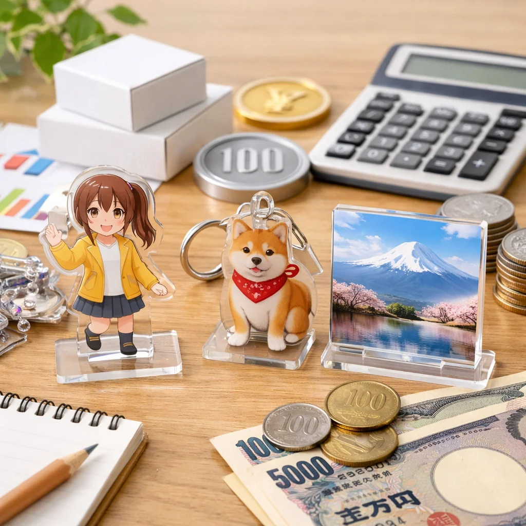 以下に、アクリルグッズの小ロット注文時の価格例を示します。これらの情報は、各業者の公式サイトや公開情報を基にしています。