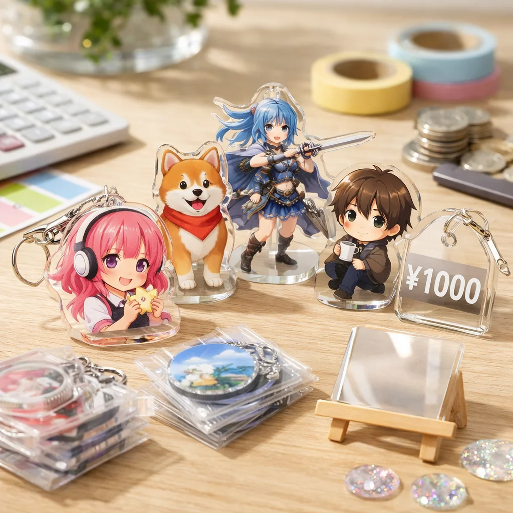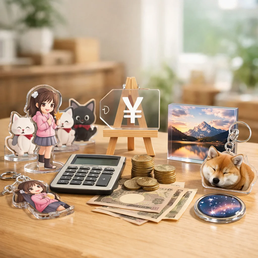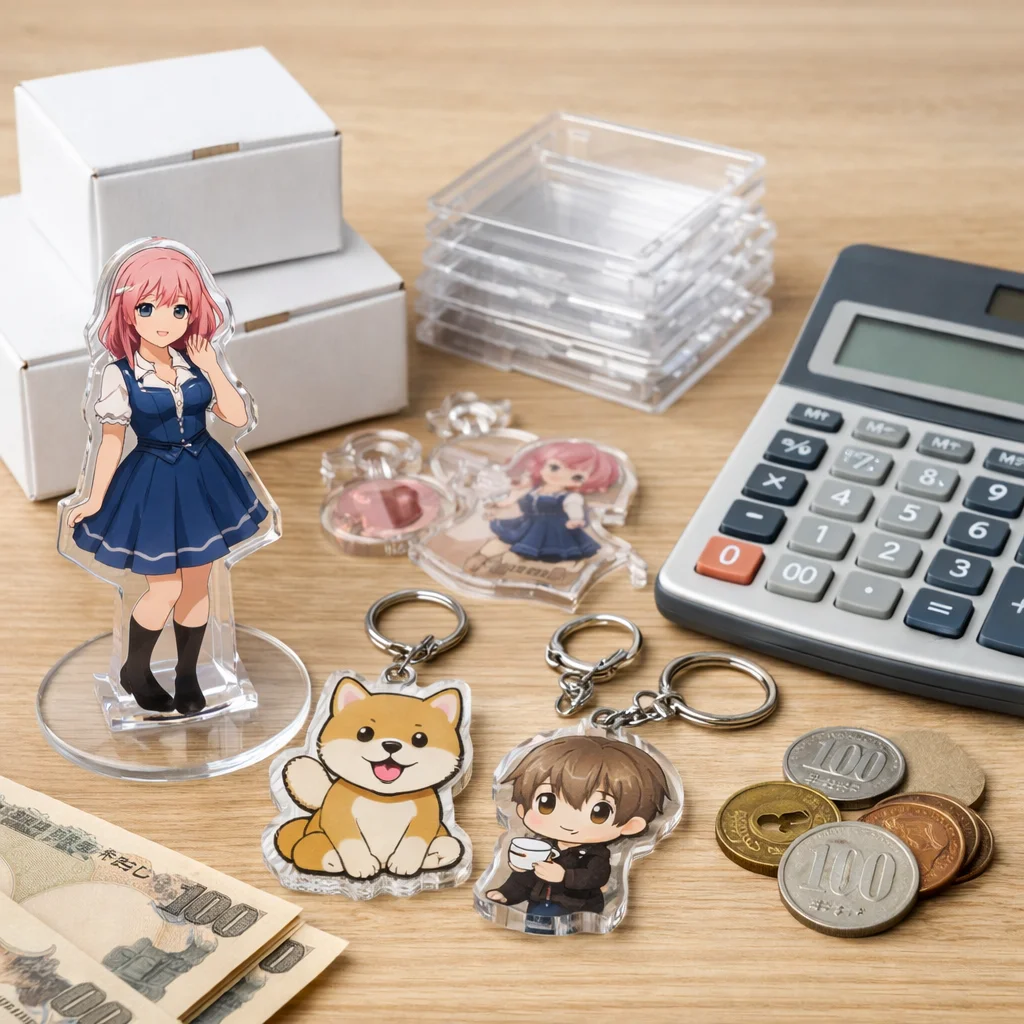 このように、小ロット注文時のアクリルグッズの価格は、仕様やサイズ、印刷面数、カット形状、付属パーツ、梱包、検品、納期、色校正、送料といった多くの要因に影響されます。これらを事前に整理し、見積もりを依頼する際に明確に提示することで、無駄なコストを削減することができるでしょう。