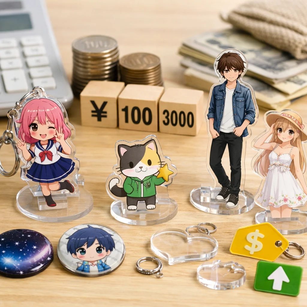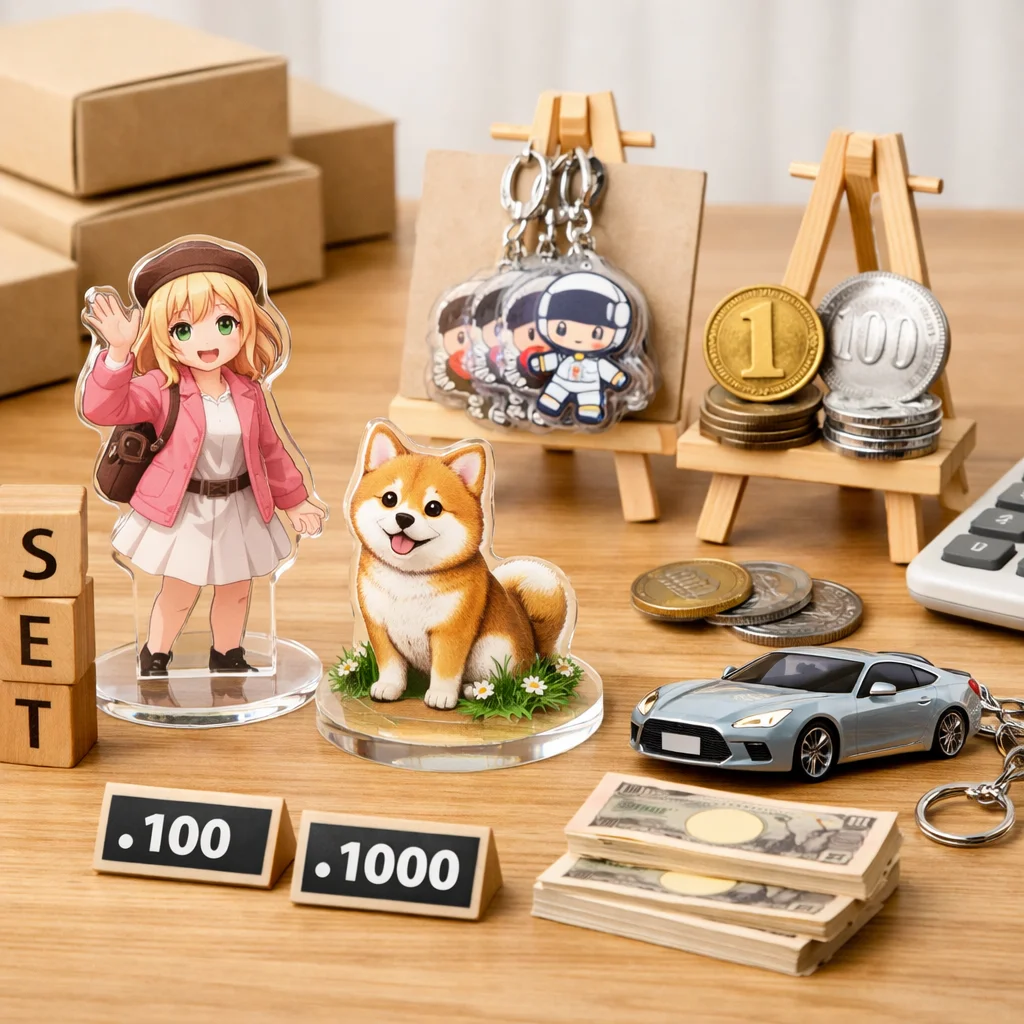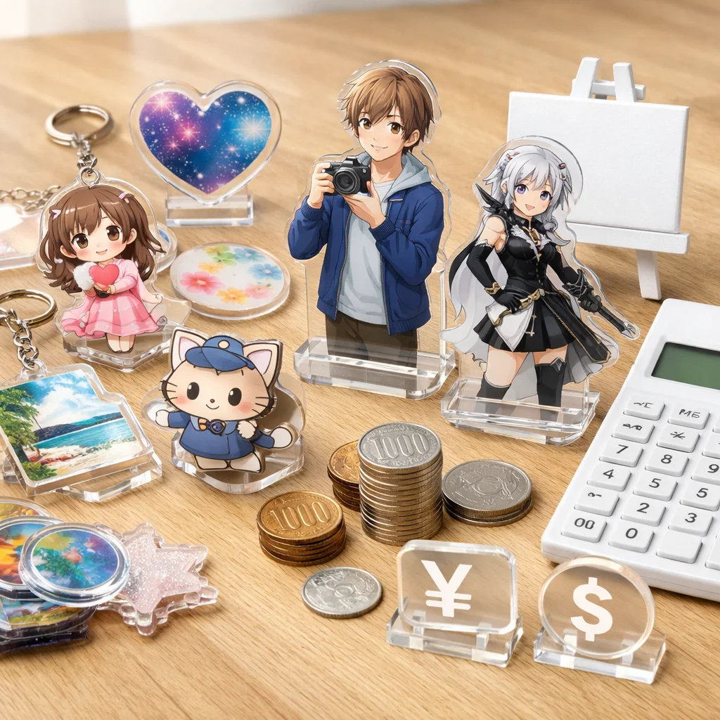 アクリルグッズの小ロット制作では、価格相場は数量により変動します。1個あたりの単価や初期費用、送料・梱包、オプションが影響を与えます。数量が多いほど単価は下がり、コストパフォーマンスが向上しますので、取引条件をしっかり確認しましょう。