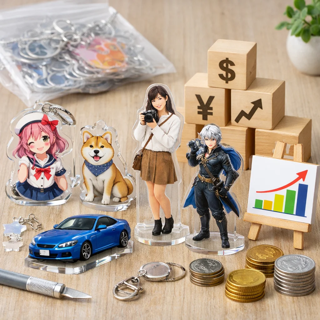 5. 円安の影響: 輸入原材料の価格上昇は、アクリルグッズの製造コストを押し上げ、価格に反映されます。