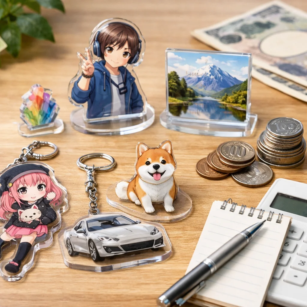アクリルグッズをお考えの方は、最低ロット数の確認や工程に応じた価格設定を意識し、適切な業者に問い合わせることが成功への第一歩です。
