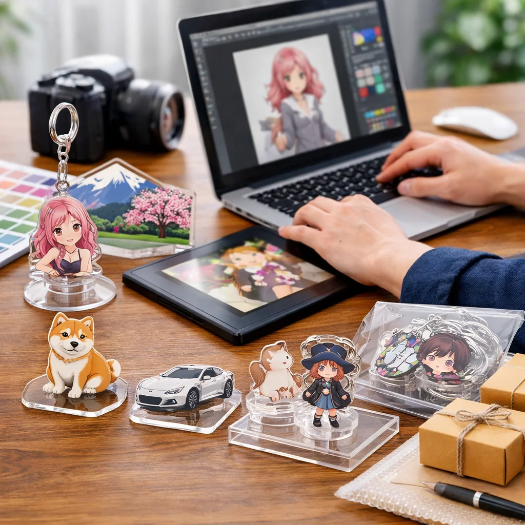 商品選定:希望するアクリルグッズの種類(例:アクリルキーホルダー、アクリルスタンド)を決定します。