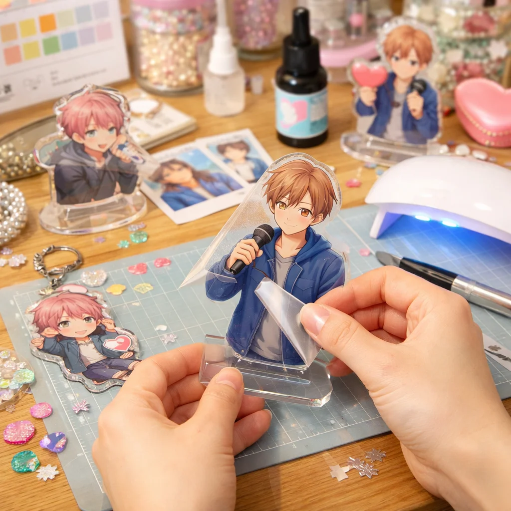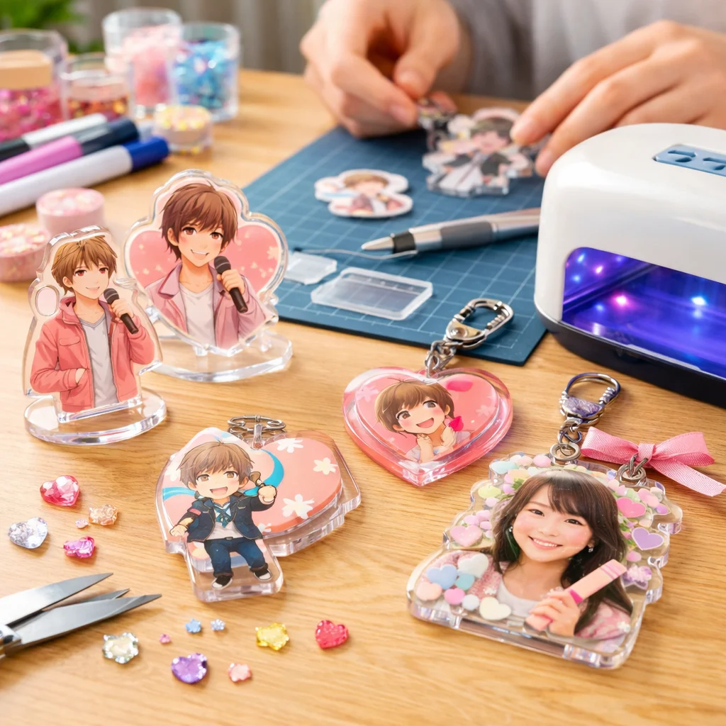 アクリルグッズの自作は、推し活をより充実させる素晴らしい方法です。完成イメージを明確にし、必要なスキルと道具を整え、失敗しやすい点を事前に把握しておくことで、よりスムーズに制作を進めることができます。初心者の方は、プラ板やUVレジン、フォトキーホルダーを利用した簡単な方法から始めてみてください。