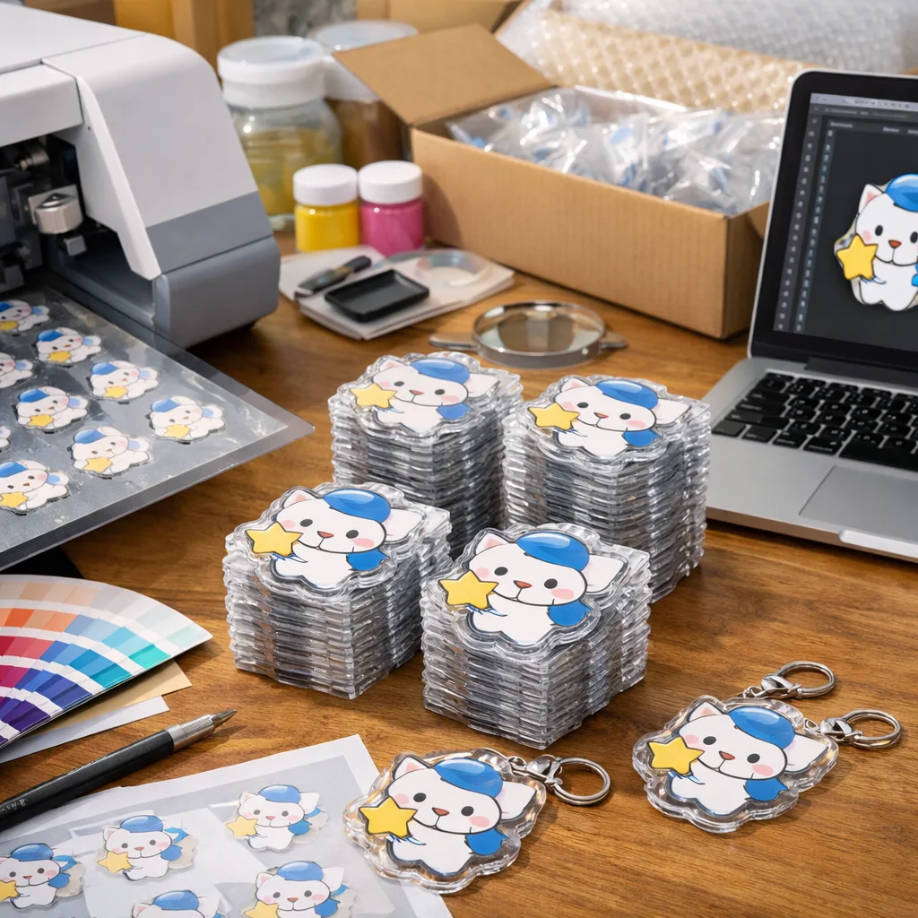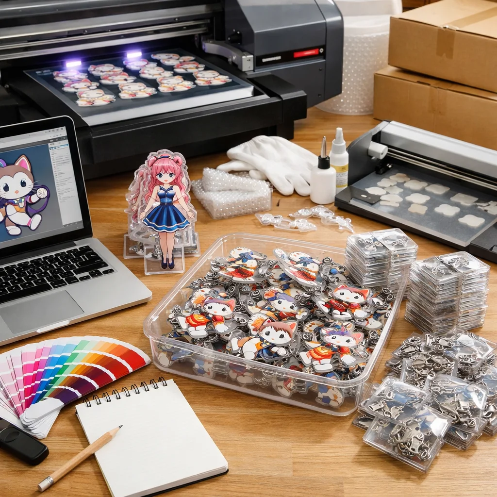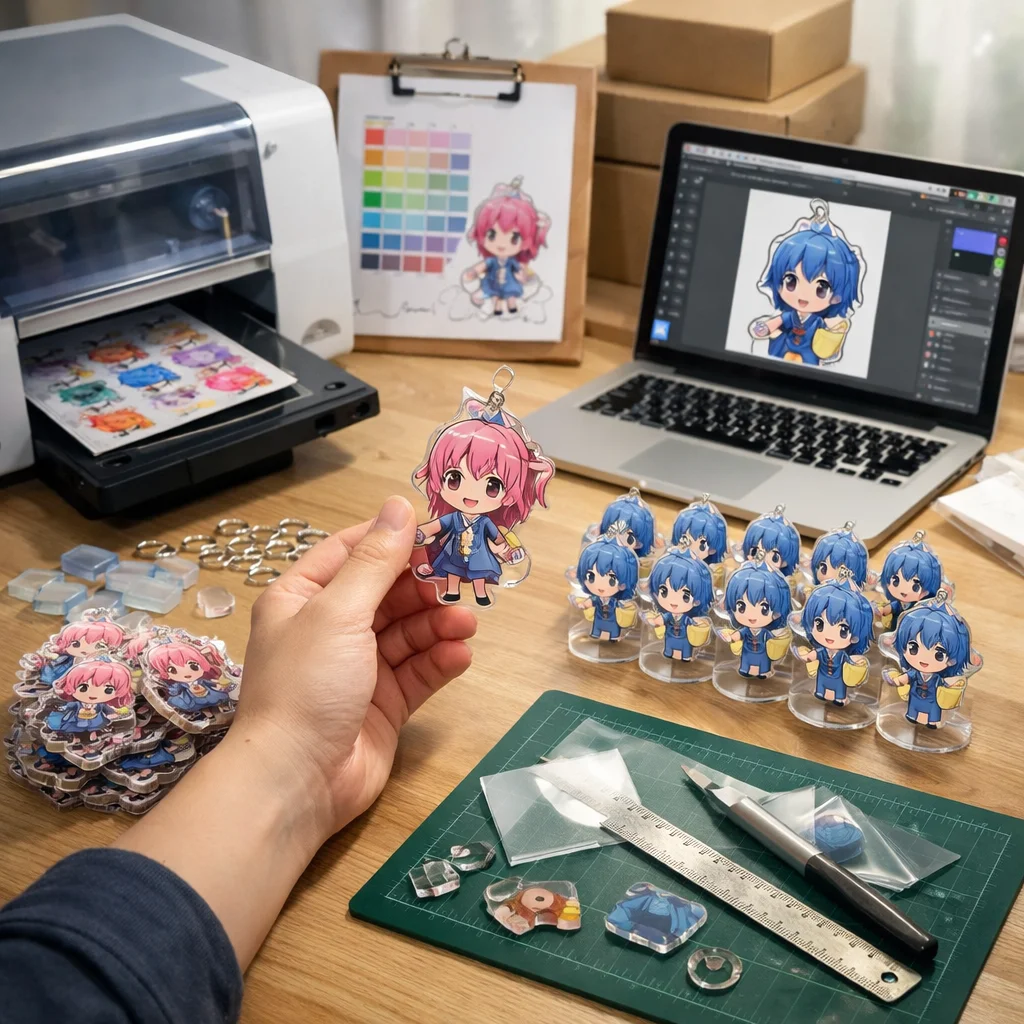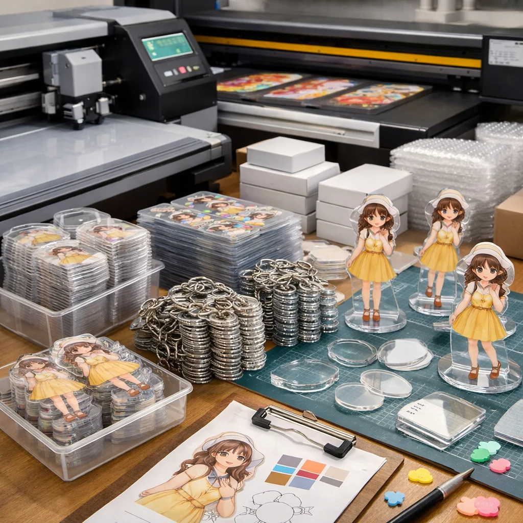 このように、アクリルグッズを100個制作するためには、材料の特性から加工方法、発注の全体像、さらには数量に伴う影響まで、さまざまな視点が必要です。製作前にこれらの基礎知識を押さえておくことで、スムーズにアクリルグッズの制作に取り組むことができるでしょう。