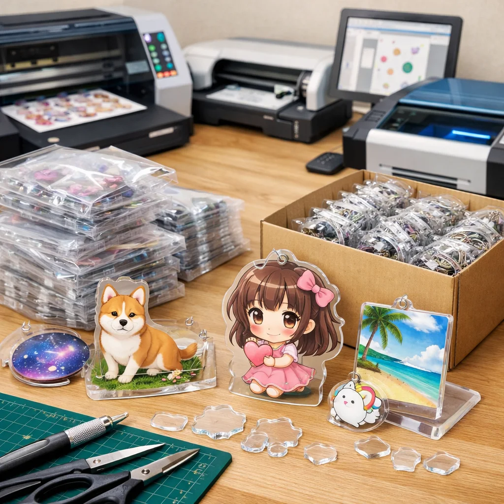 制作に必要な材料と道具の一覧を理解することは、アクリルグッズ100個制作する際には非常に重要です。本記事では、業者に発注する際に必要なものを「必須」と「あると便利」に分けて一覧化し、具体的な要素について解説します。