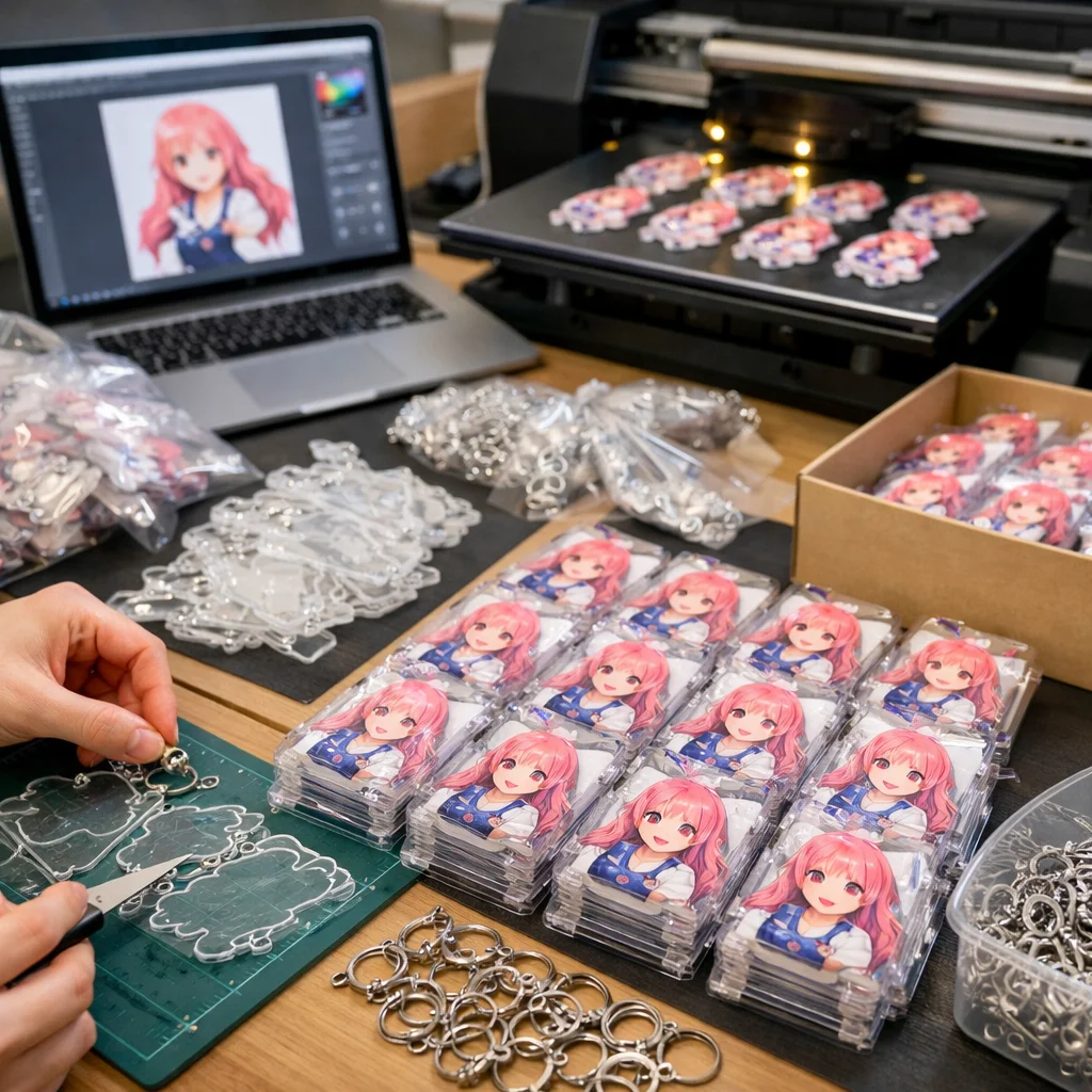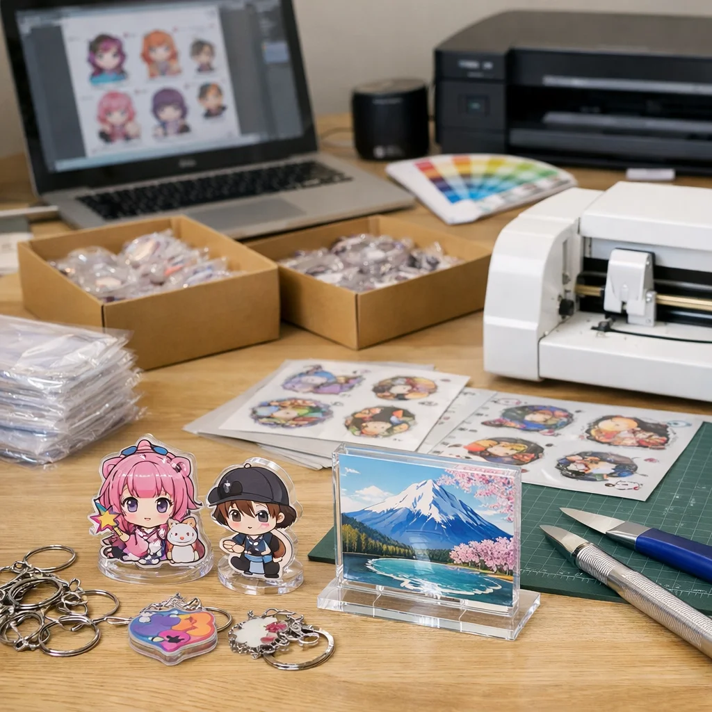 アクリルグッズの100個制作には、企画から納品までの明確なステップが必要です。入稿データ作成、見積もり、校正、製造、検品、納品の各工程で失敗ポイントに注意し、事前に確認することで、スムーズな制作が可能になります。品質を保ちつつ、計画的に進めることが重要です。