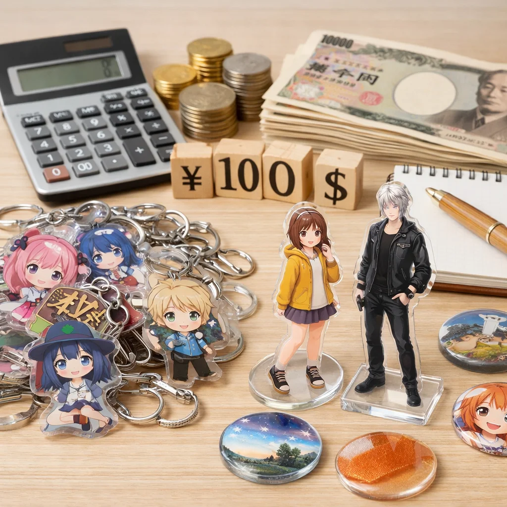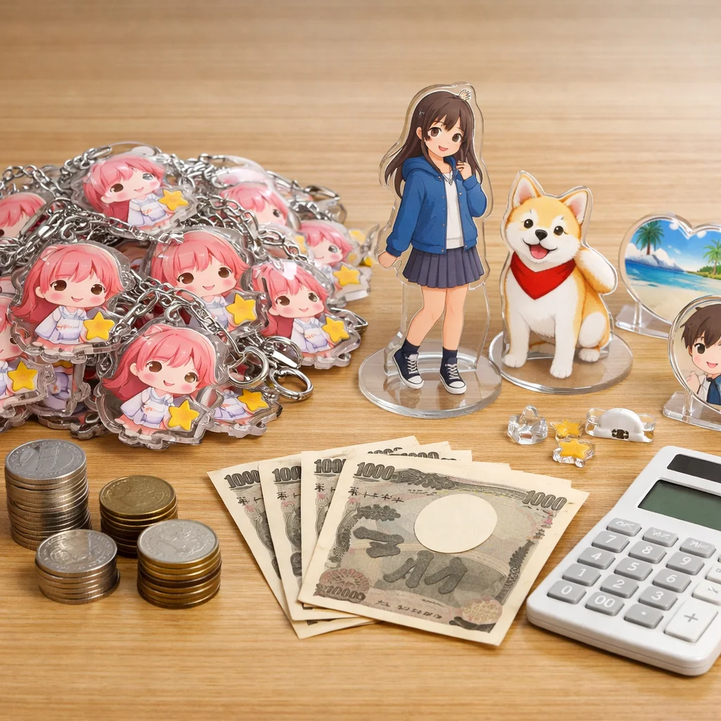 まず、アクリルグッズの価格を構成する主な要素を整理しましょう。
