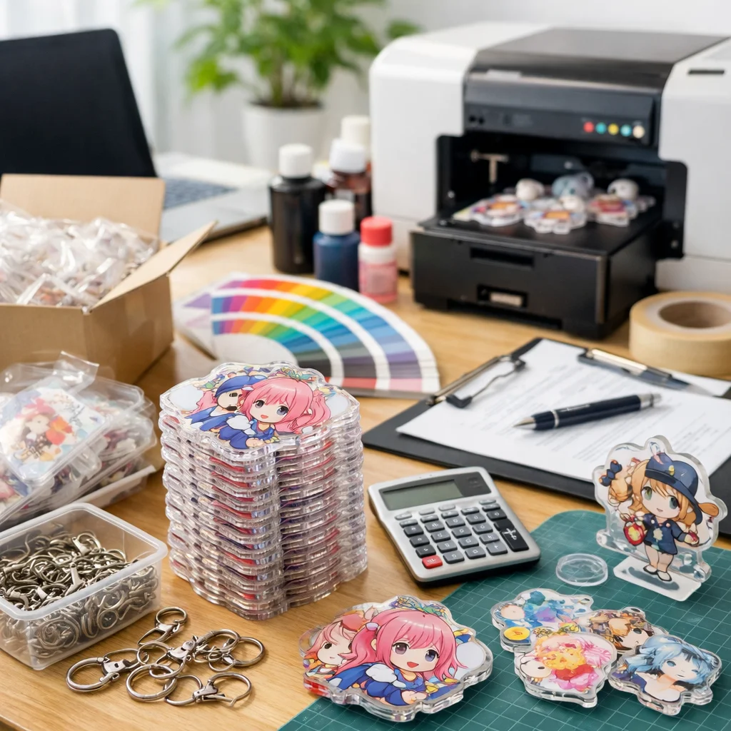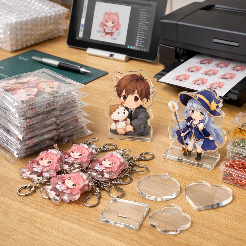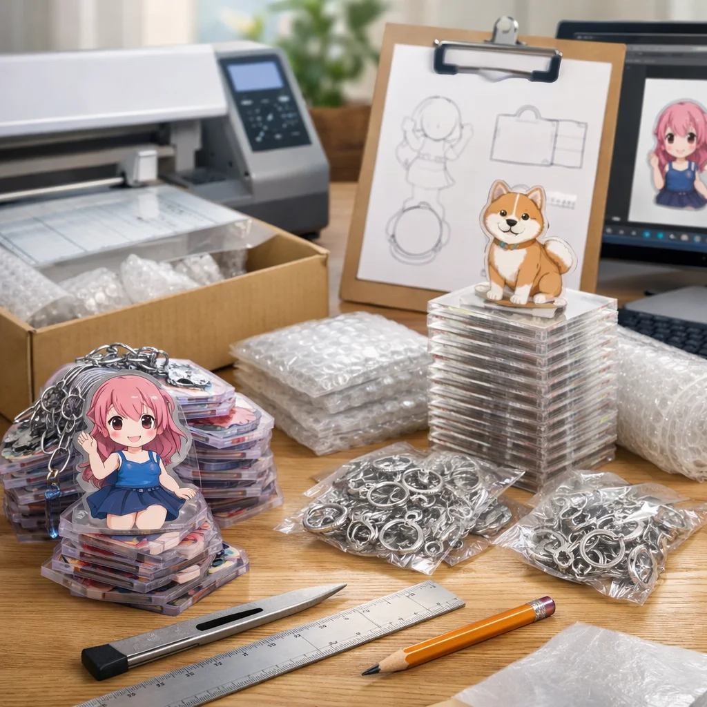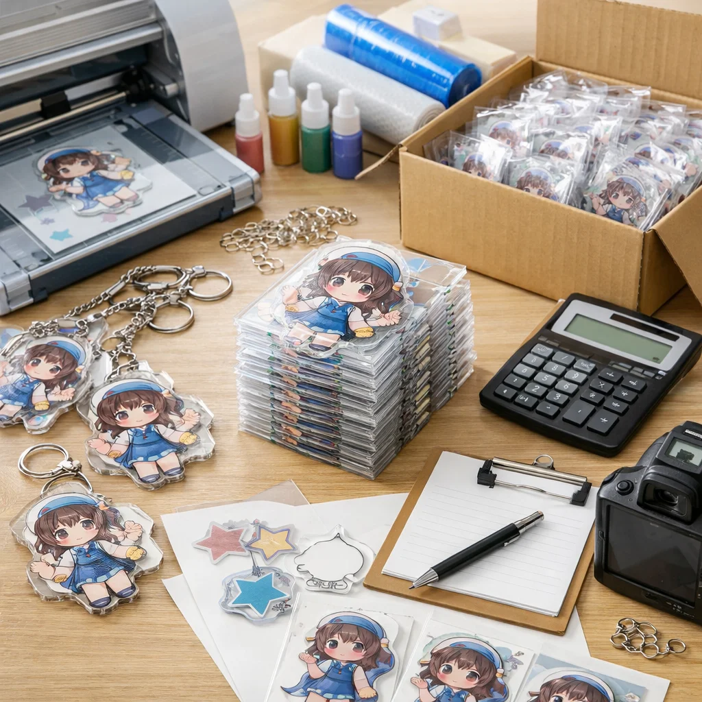 アクリルグッズを100個制作する際の全体フローと注意点について解説します。初心者の方でも迷わず進められるよう、各ステップを詳しく説明します。