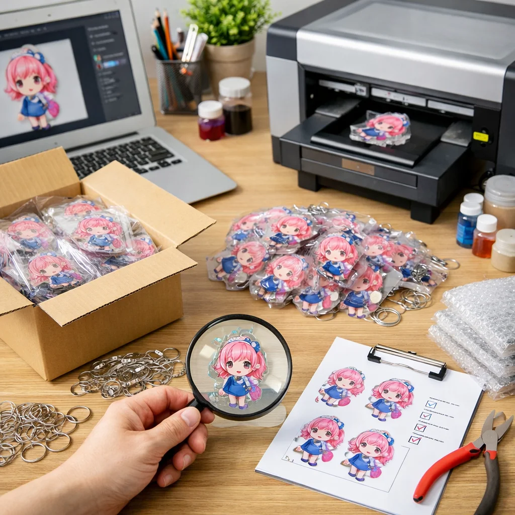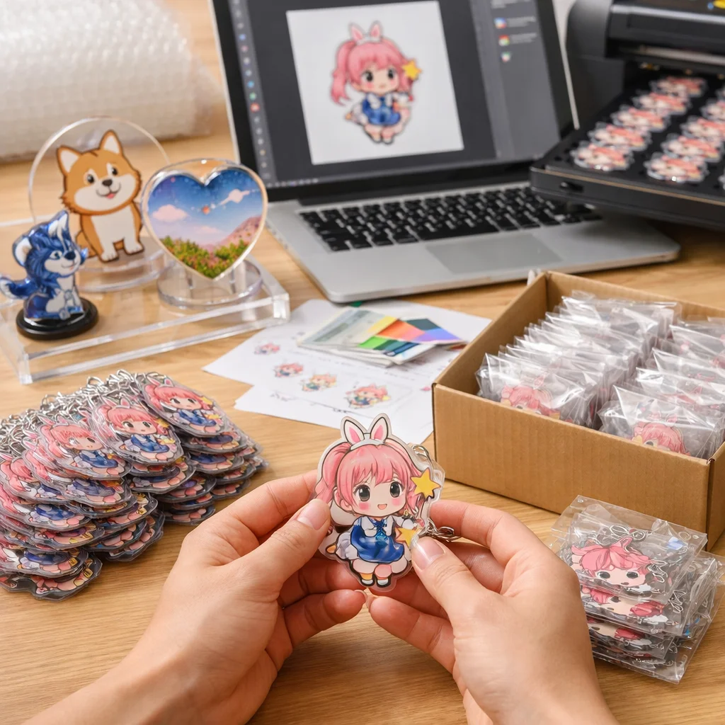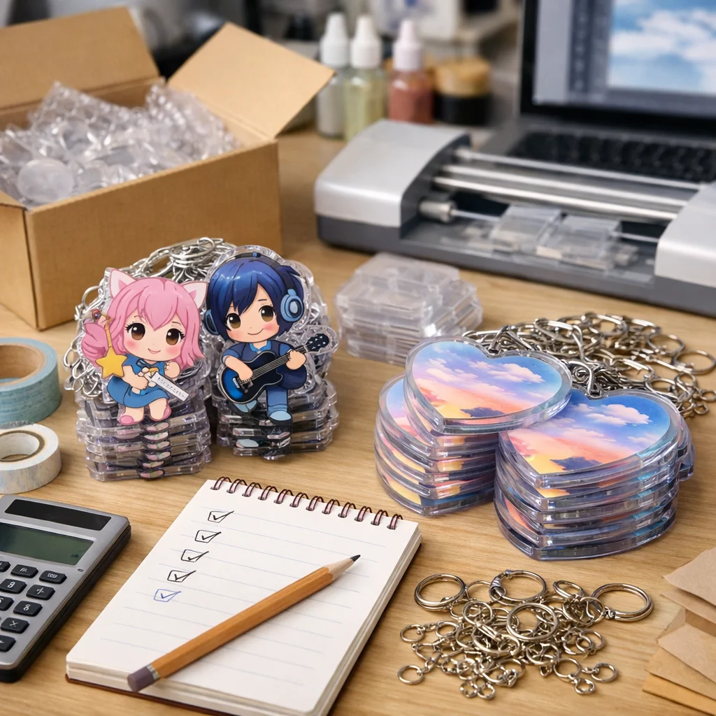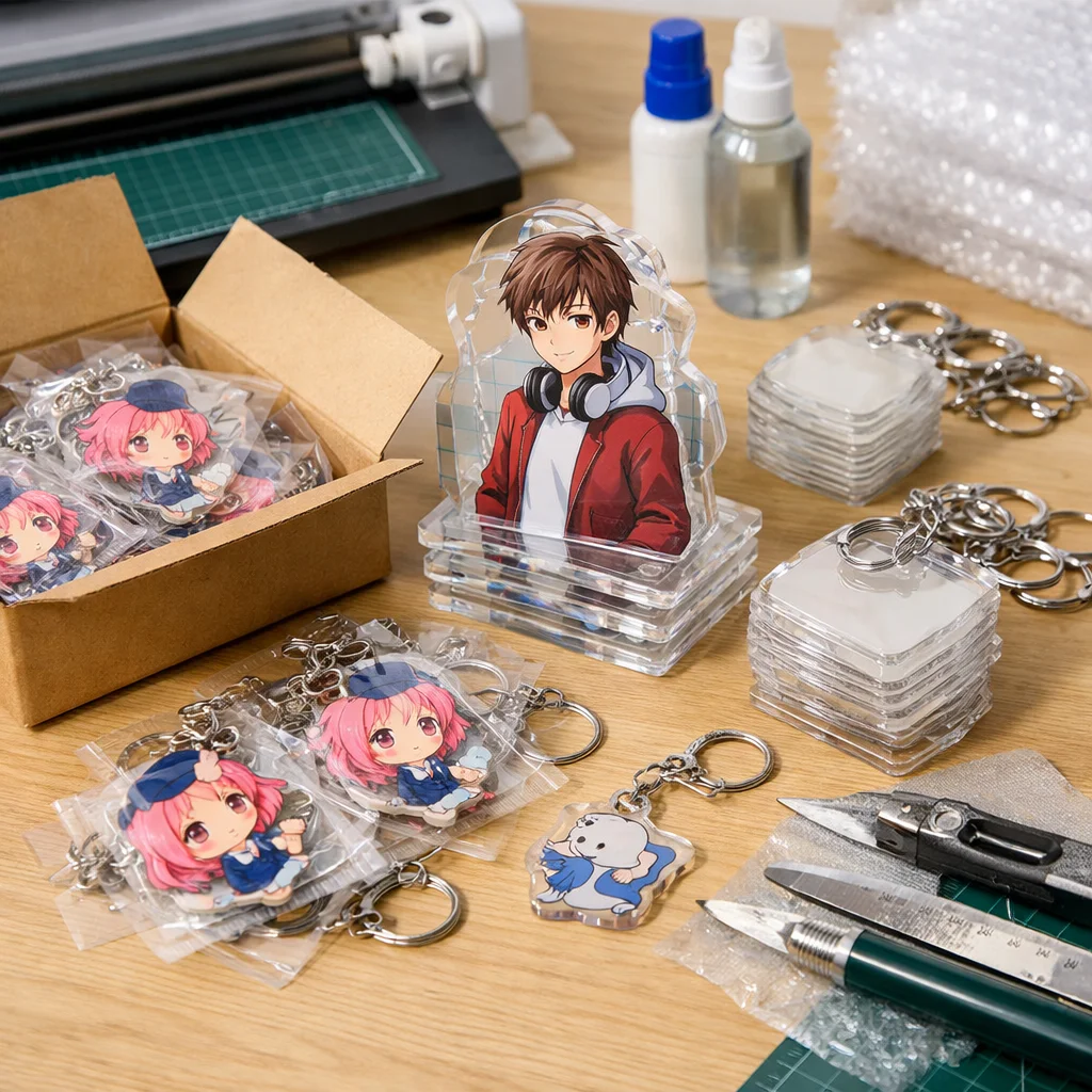 アクリルグッズを100個制作する際の全体フローと注意点について解説します。初心者の方でも迷わず進められるよう、各ステップを詳しく説明します。
