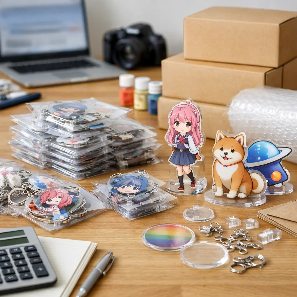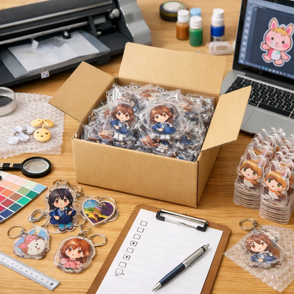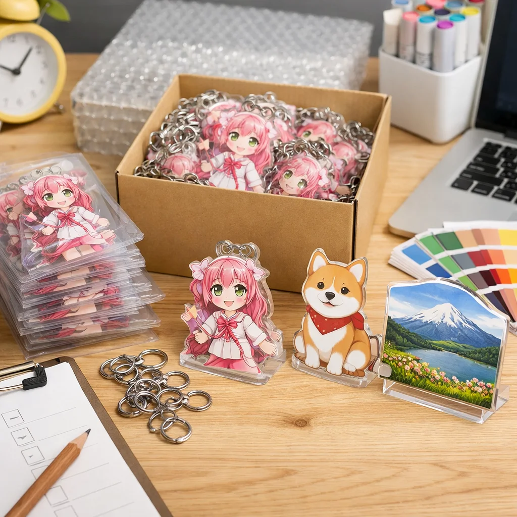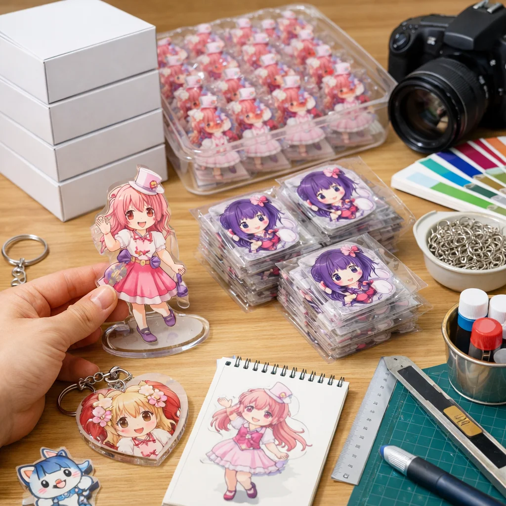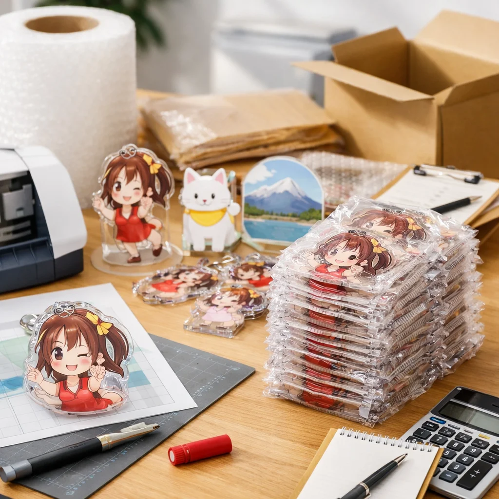 アクリルグッズを100個制作する際は、企画から納品までの全体フローを把握することが重要です。特に、仕様決定や校正、検品に注意し、単価の下がり方や予備数、梱包・送料も考慮することで、スムーズな進行が可能になります。