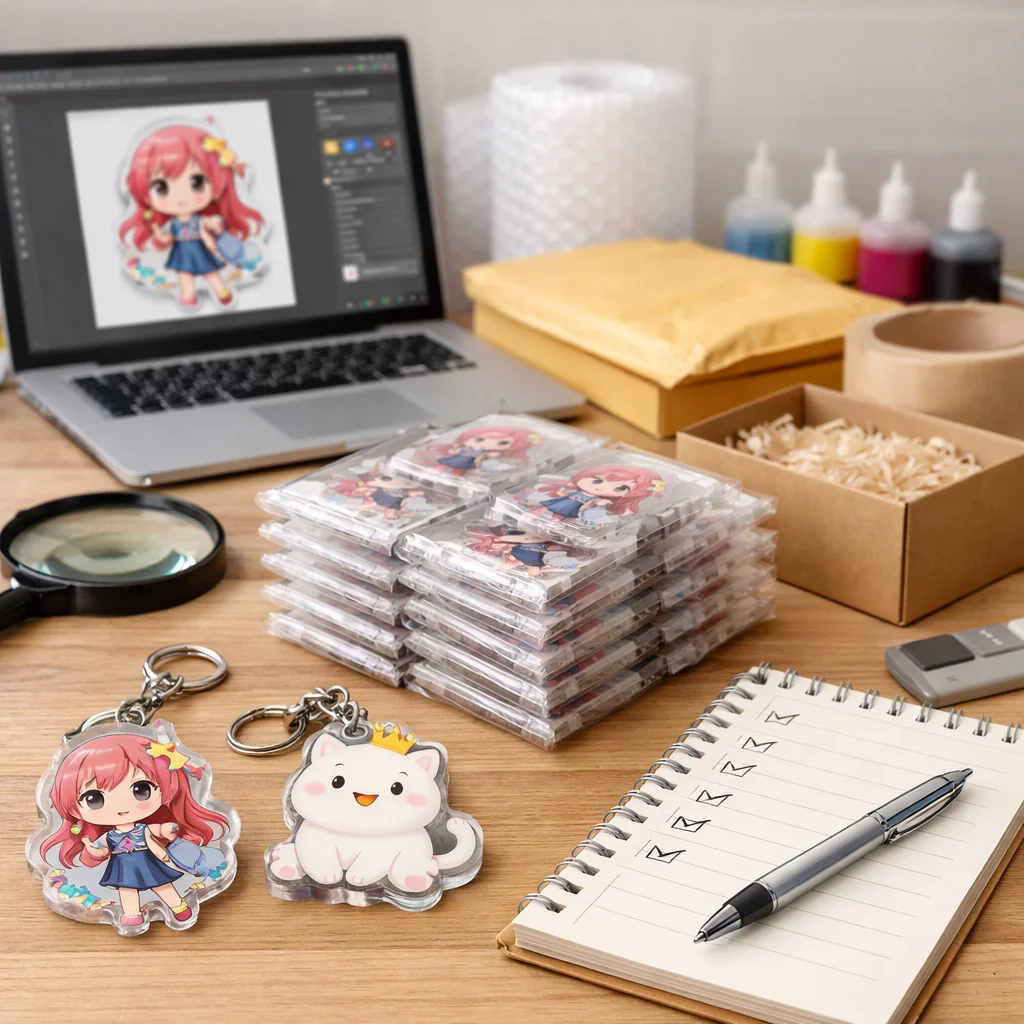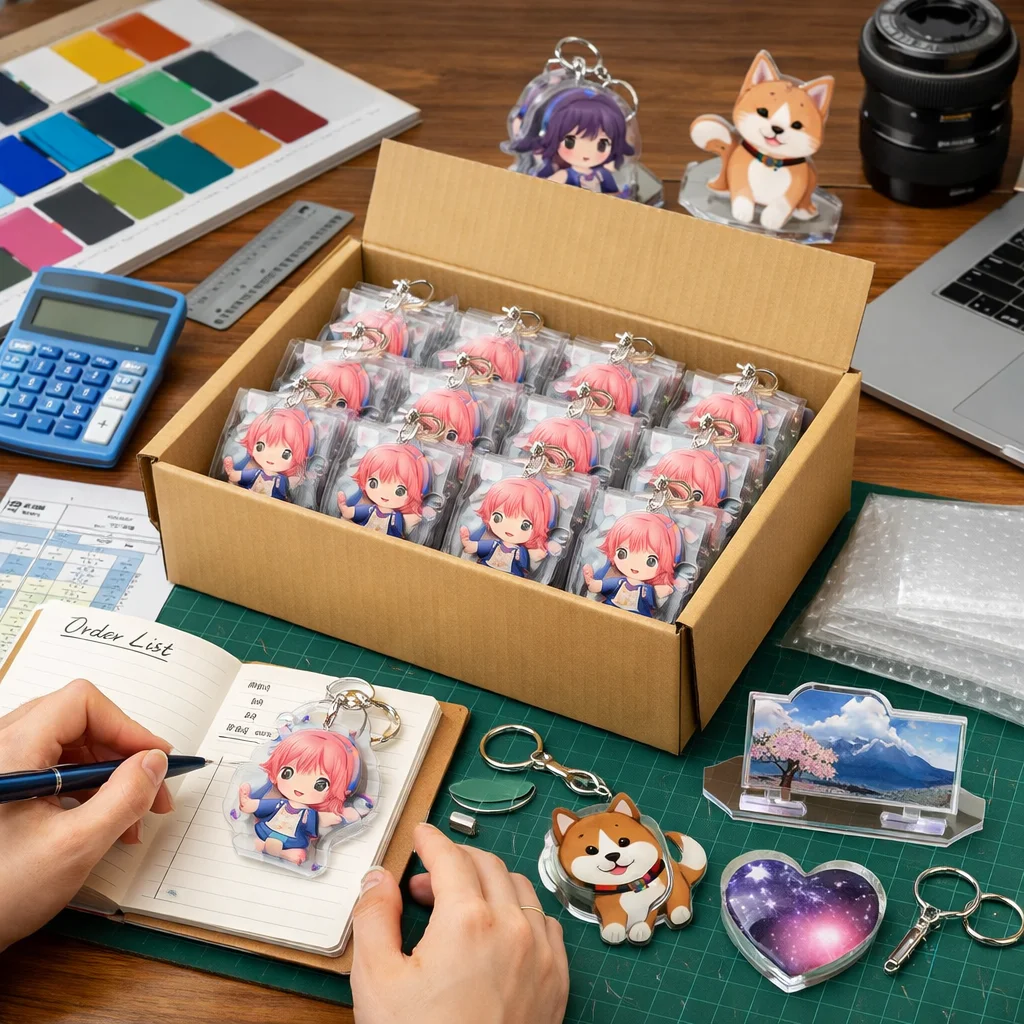 アクリルグッズを100個注文する際は、仕様確定、見積条件、納期、検品、梱包・配送、予備数の確認が重要です。特にデータの不備や追加費用が発生しないよう、事前にしっかりと打ち合わせを行うことが成功のカギとなります。お客様の満足度を高めるために、これらのポイントを抑えて準備を進めてください。