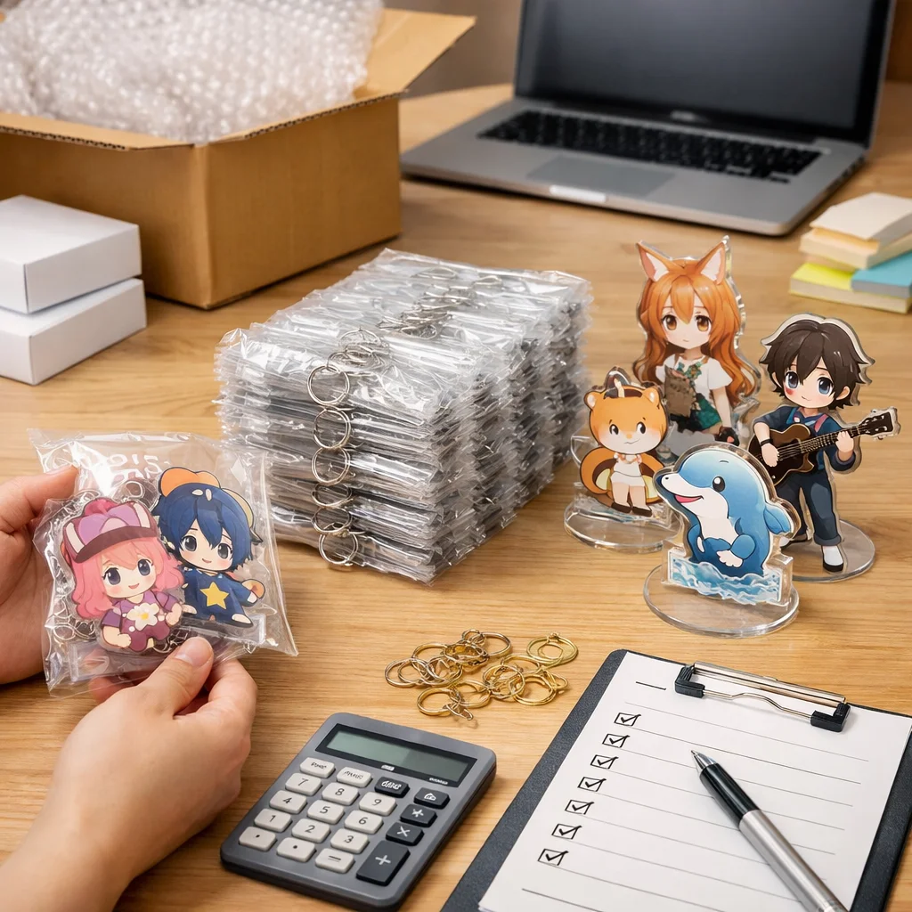 最後に、梱包や配送についても考慮すべきです。アクリルグッズは壊れやすい素材のため、適切な梱包を行うことで、輸送中の破損を防ぐことが求められます。また、配送方法によって費用が変動するため、適切な選択も必要です。