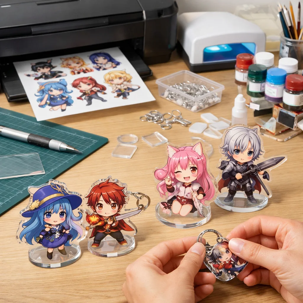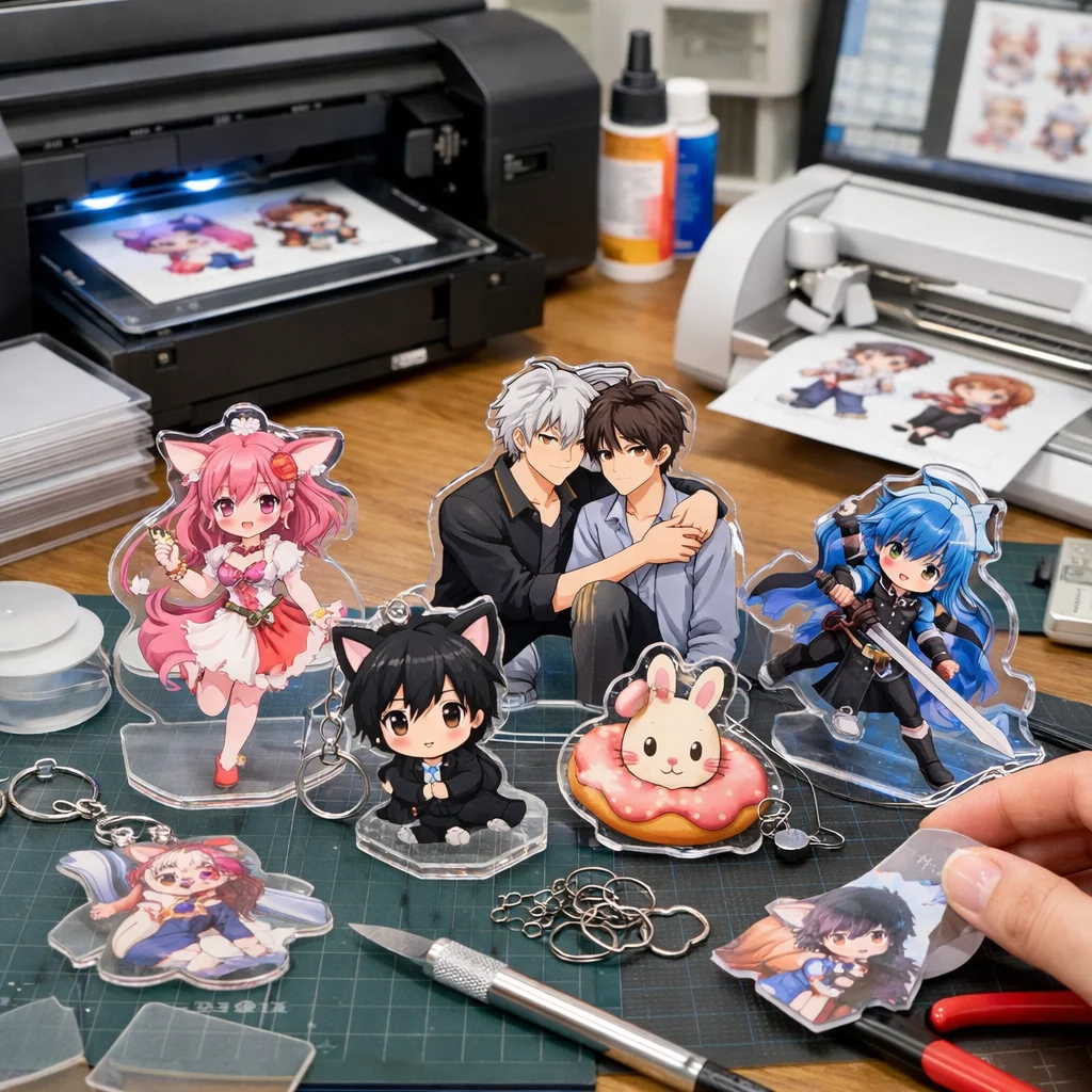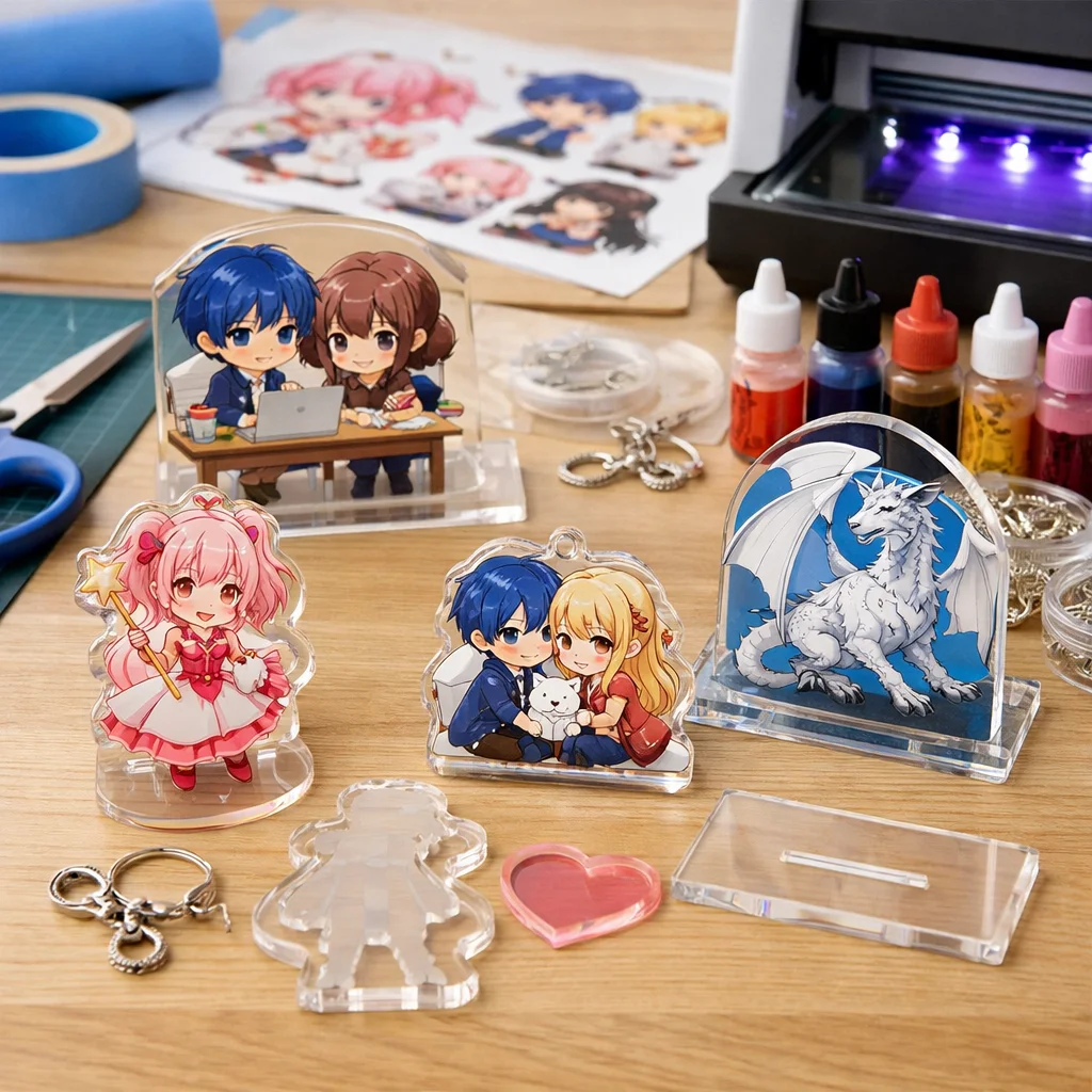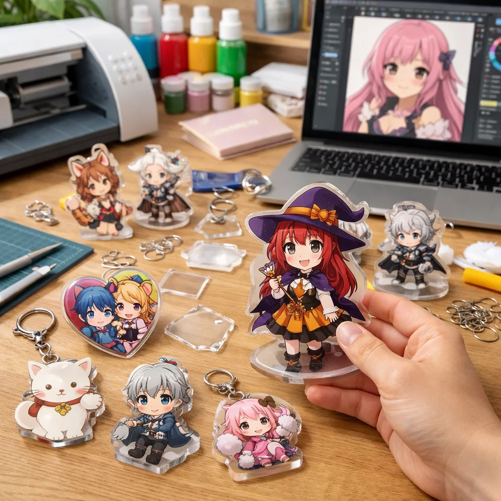 アクリルグッズは、その透明感と軽さから、同人活動において非常に人気の高いアイテムです。特に、アクリルキーホルダーやアクリルスタンドなどは、手軽にオリジナルグッズを作成できるため、多くの同人作家が取り入れています。
